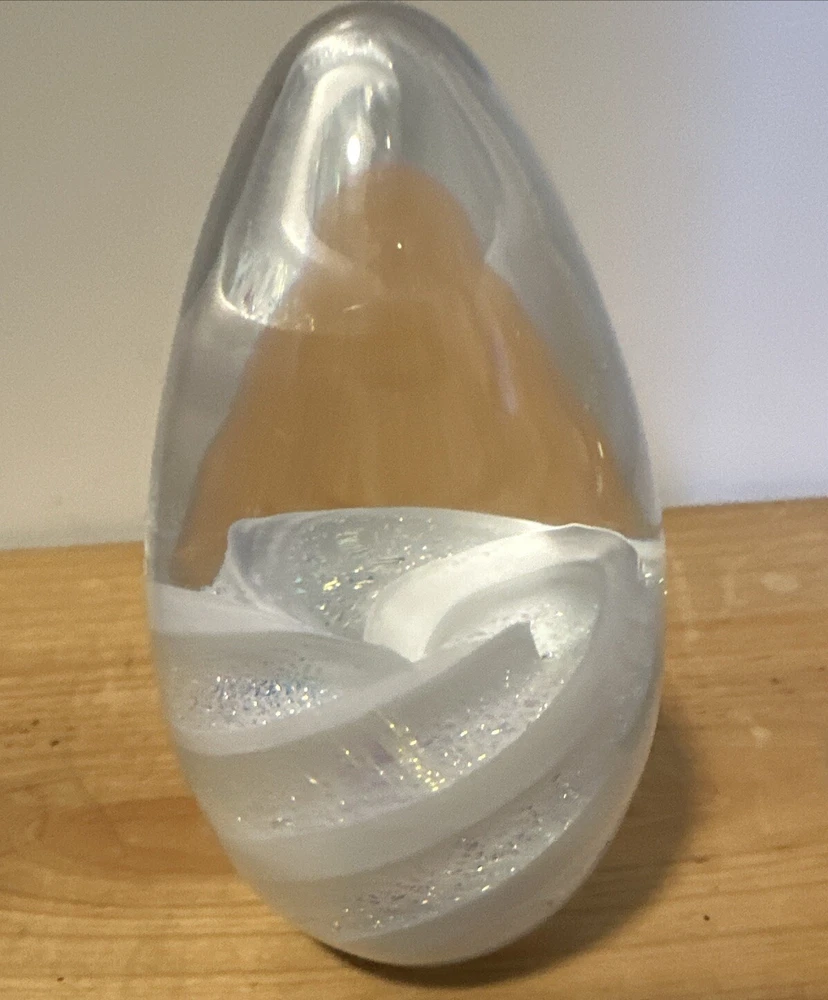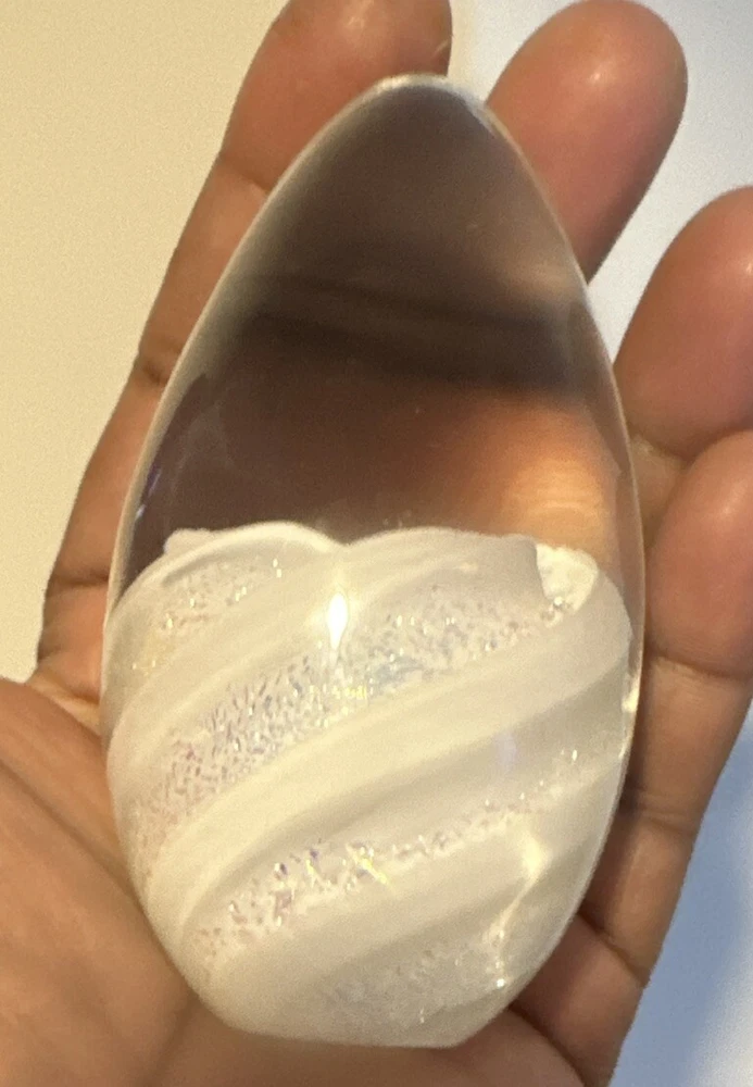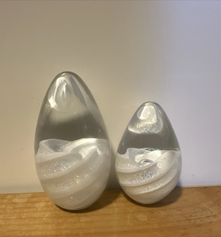 TWO (2) GES Glass Eye Studio Art Glass Egg Shaped Paperweight Glitter 3” & 2”. Thank you for shopping with Thrifting With Bird 🦜.