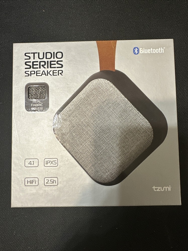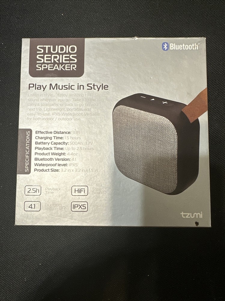 New never used. Open box This TZUMI studio series speaker is the perfect addition to your portable audio collection. With wireless Bluetooth connectivity and a carrying strap, this compact speaker is ideal for on-the-go listening. The 3in square shape and gray fabric material make it a stylish choice for any music lover. The speaker features a 500ah battery capacity, making it long-lasting and reliable. The compatibility with tzumi brand and model 4.1, along with its lightweight size of 4.4 ounces, make it easy to take with you wherever you go. This portable speaker system is a must-have for anyone who loves to listen to music on the move.