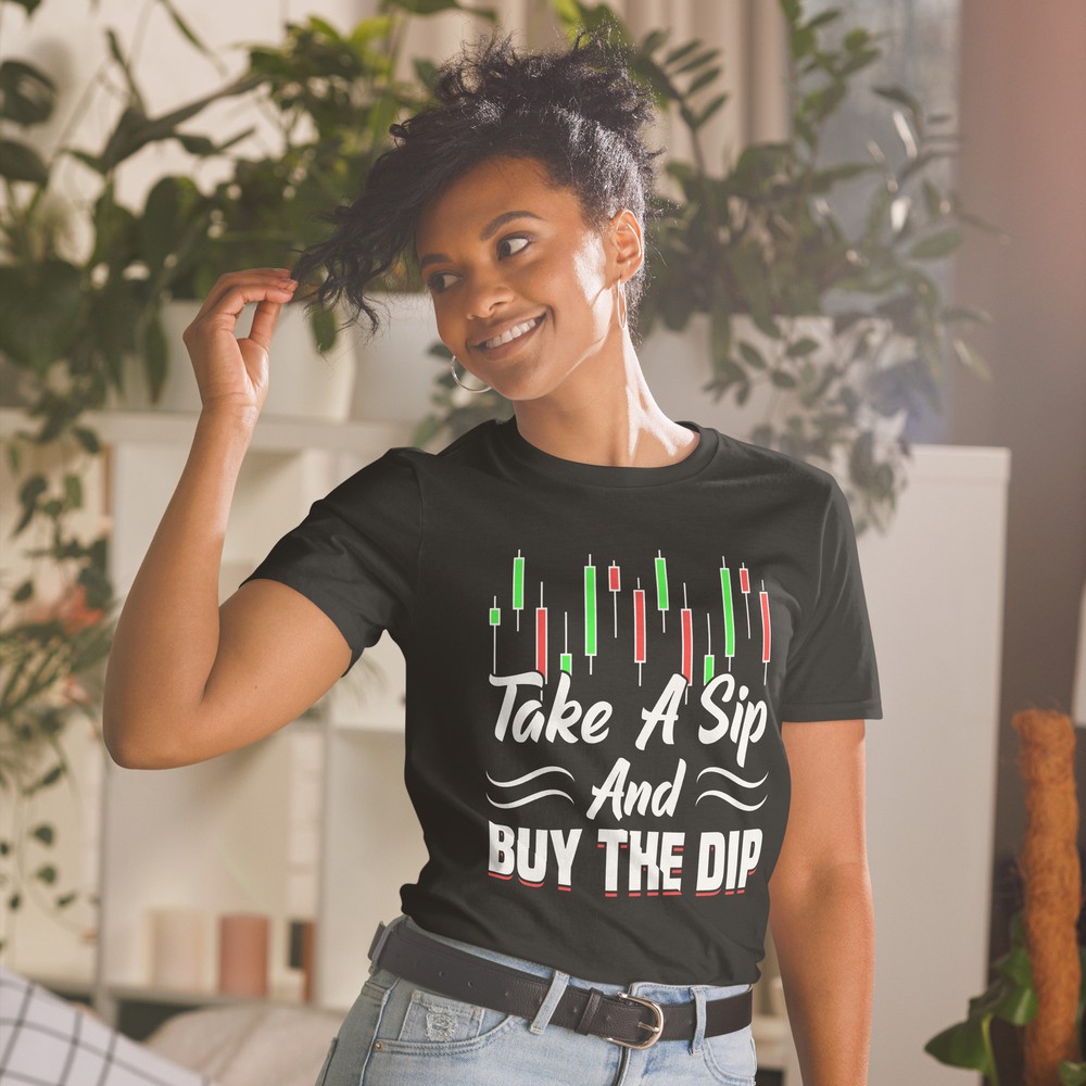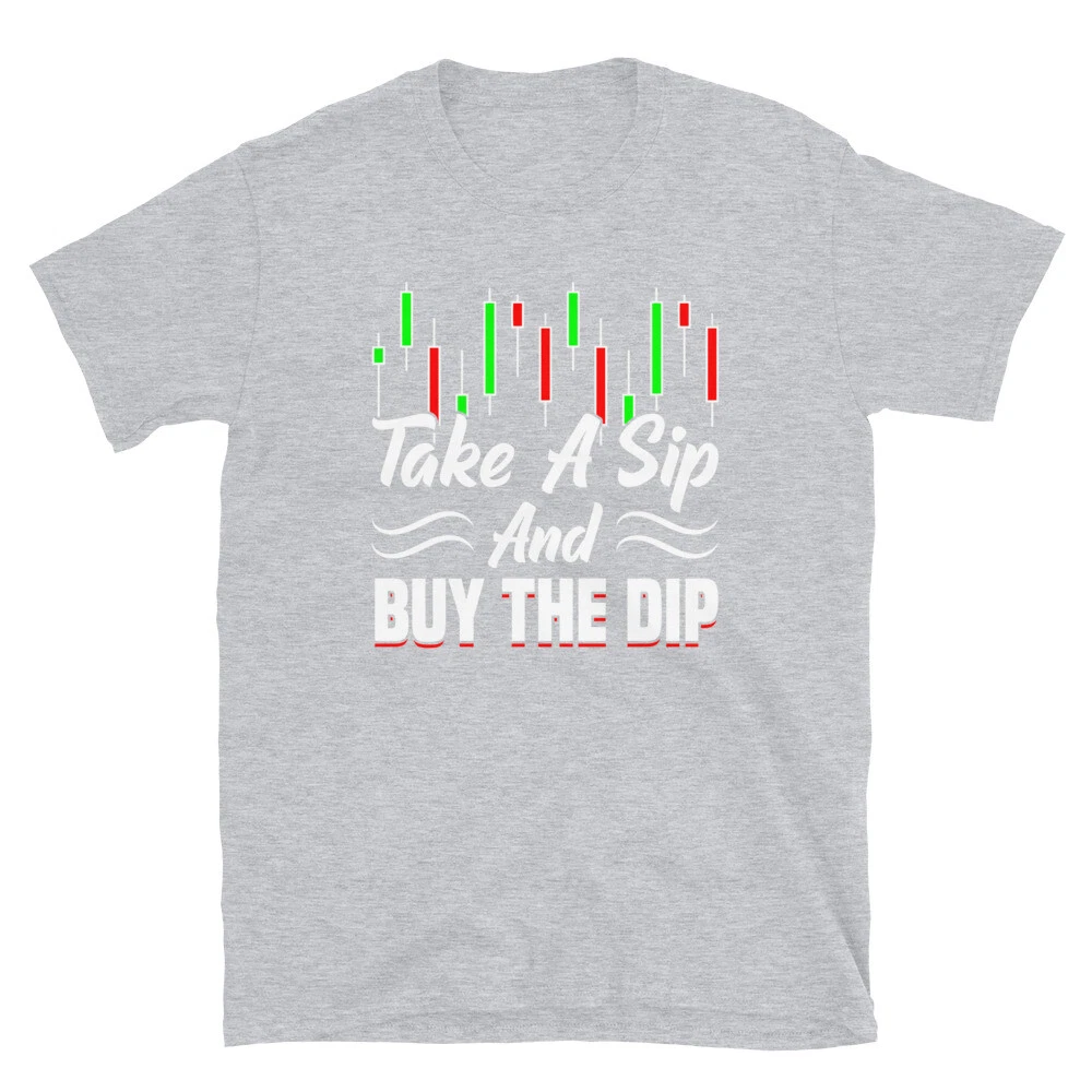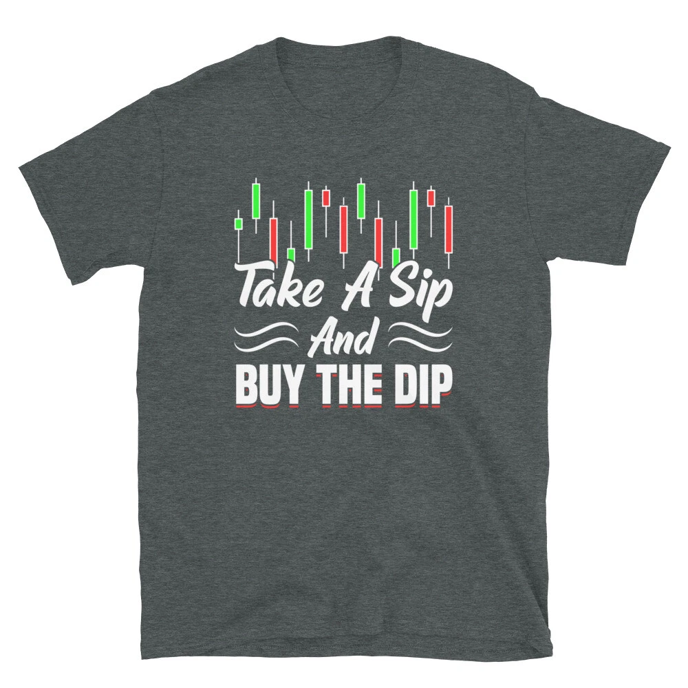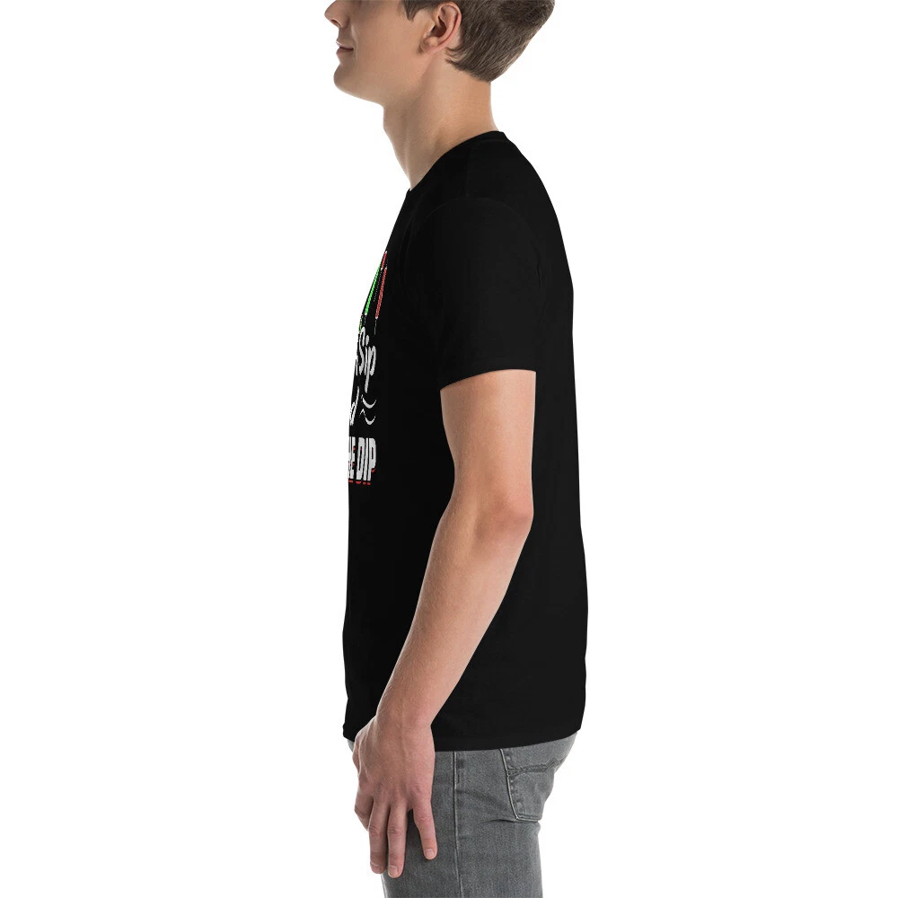 Take A Sip Buy The Dip Trader Stock Market Forex Crypto. Tags: buy the dip diamond hands to the moon short squeeze r wallstreetbets r wsb never sell bull bullish memes stocks stock market trading trader investing crypto forex hodl You've now found the staple t-shirt of your wardrobe. It's made of 100% ring-spun cotton and is soft and comfy. The double stitching on the neckline and sleeves add more durability to what is sure to be a favorite! • 100% ring-spun cotton • Sport Grey is 90% ring-spun cotton, 10% polyester • Dark Heather is 65% polyester, 35% cotton • 4.5 oz/yd² (153 g/m²) • Shoulder-to-shoulder taping • Quarter-turned to avoid crease down the center This product is made especially for you as soon as you place an order, which is why it takes us a bit longer to deliver it to you. Making products on demand instead of in bulk helps reduce overproduction, so thank you for making thoughtful purchasing decisions! Size guide LENGTH (inches) WIDTH (inches) S 28 18 M 29 20 L 30 22 XL 31 24 2XL 32 26 3XL 33 28 LENGTH (cm) WIDTH (cm) S 71.1 45.7 M 73.7 50.8 L 76.2 55.9 XL 78.7 61 2XL 81.3 66 3XL 83.8 71.1
