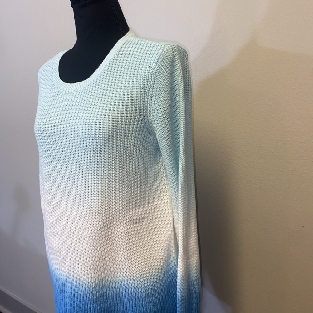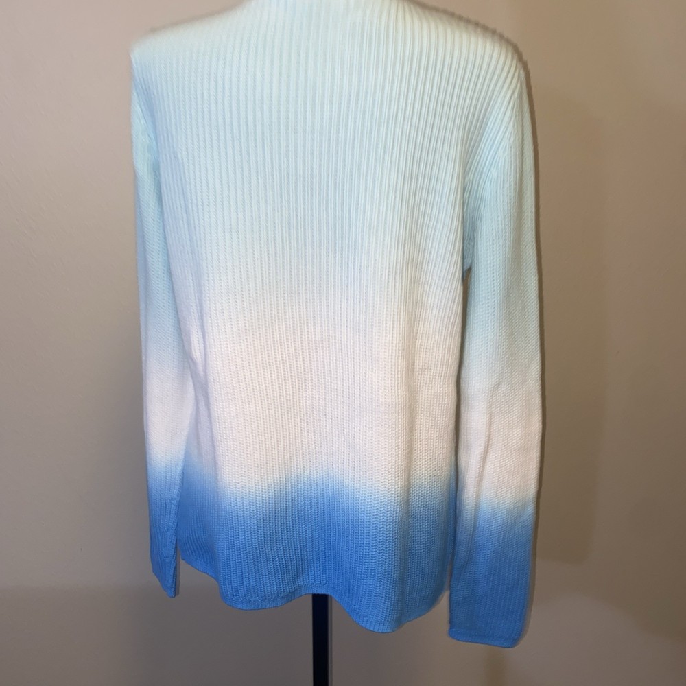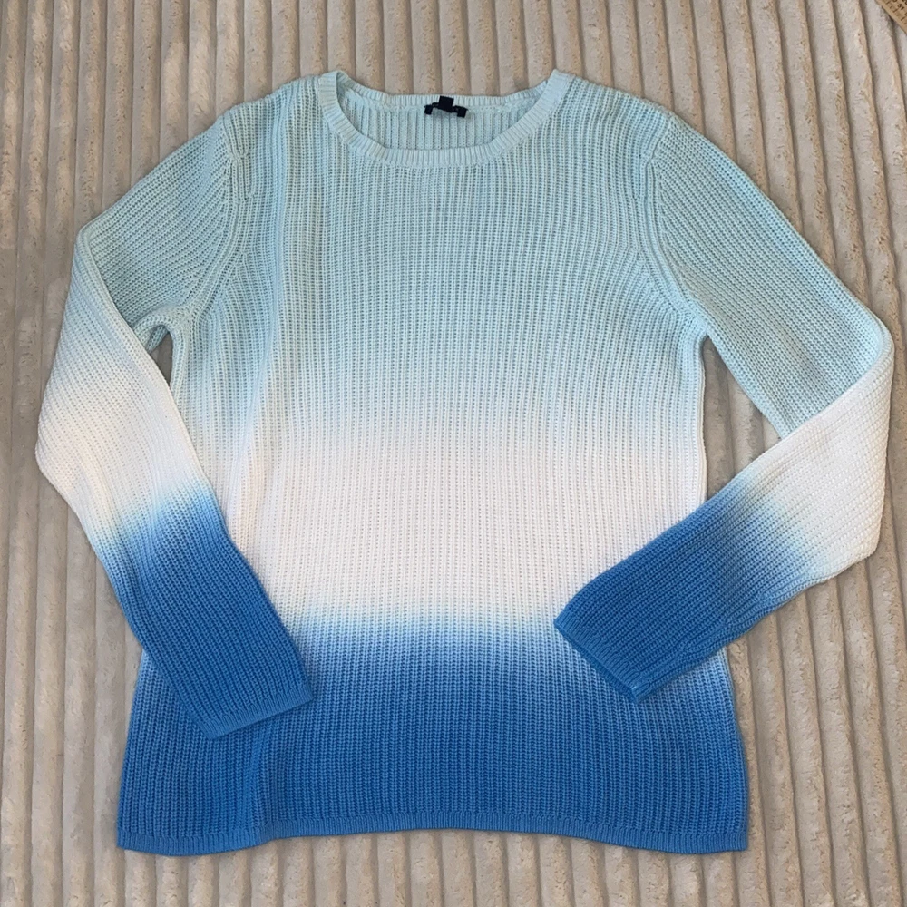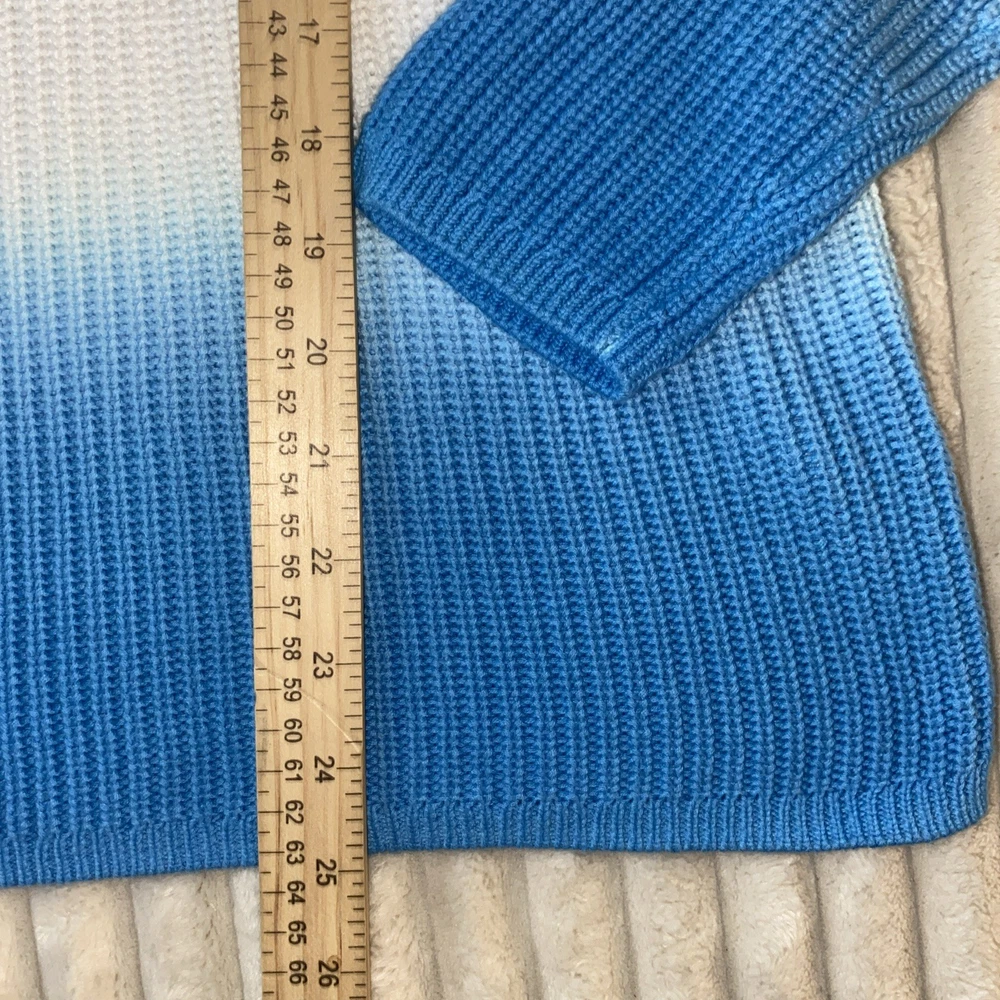 Elevate your wardrobe with the Talbots Shaker Stitch Blue Ombre Dip Dye Pullover Cotton Sweater. Designed for women who appreciate a blend of comfort and style, this knit sweater features a colorful striped pattern that effortlessly transitions from a casual daytime look to an evening out. Crafted with care from soft cotton, this sweater boasts a crew neck and long sleeves, ensuring a cozy fit for the cooler days of fall and spring. The size L garment fits regularly, allowing for easy movement, and is machine washable for hassle-free maintenance. Add a touch of vibrancy to your ensemble with this multicolored pullover that promises to be a versatile addition to your collection.