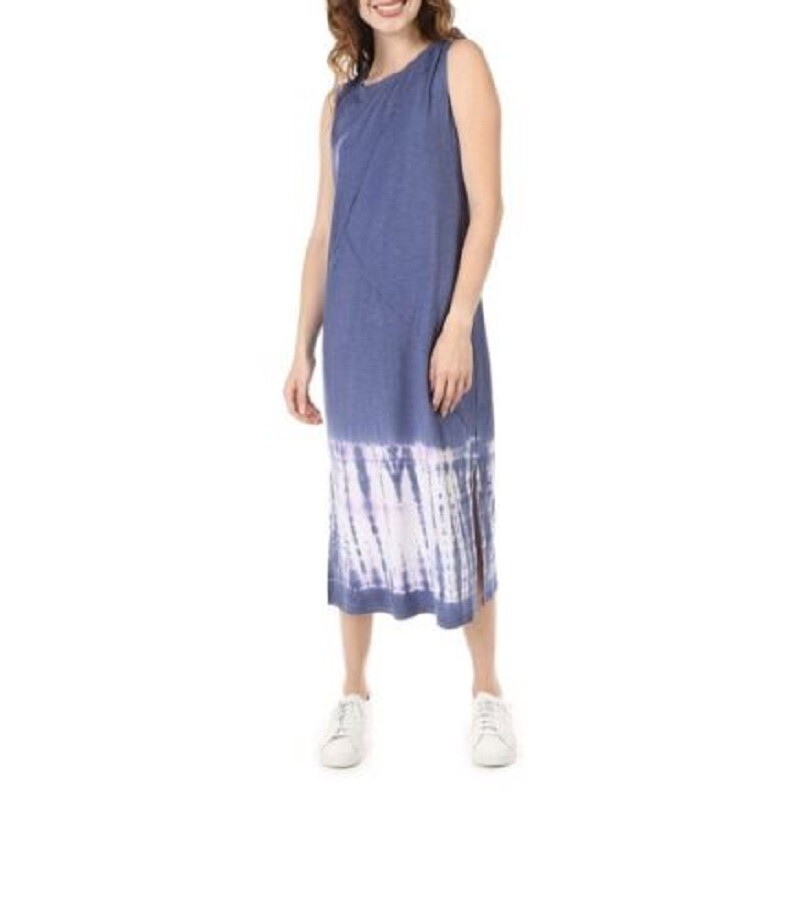 Co mfy knit with tie-dye border Loose Crew neck Stylized panels High slit sides Tie-dye variations may occur 61% polyester / 33% rayon / 6% spandex Machine wash...
