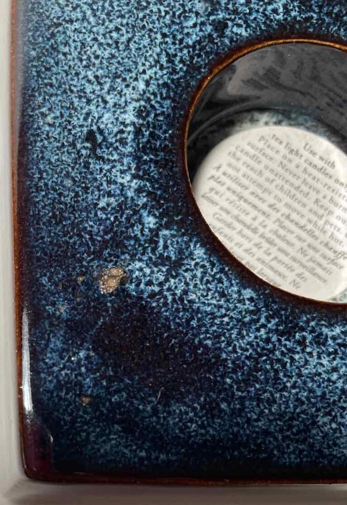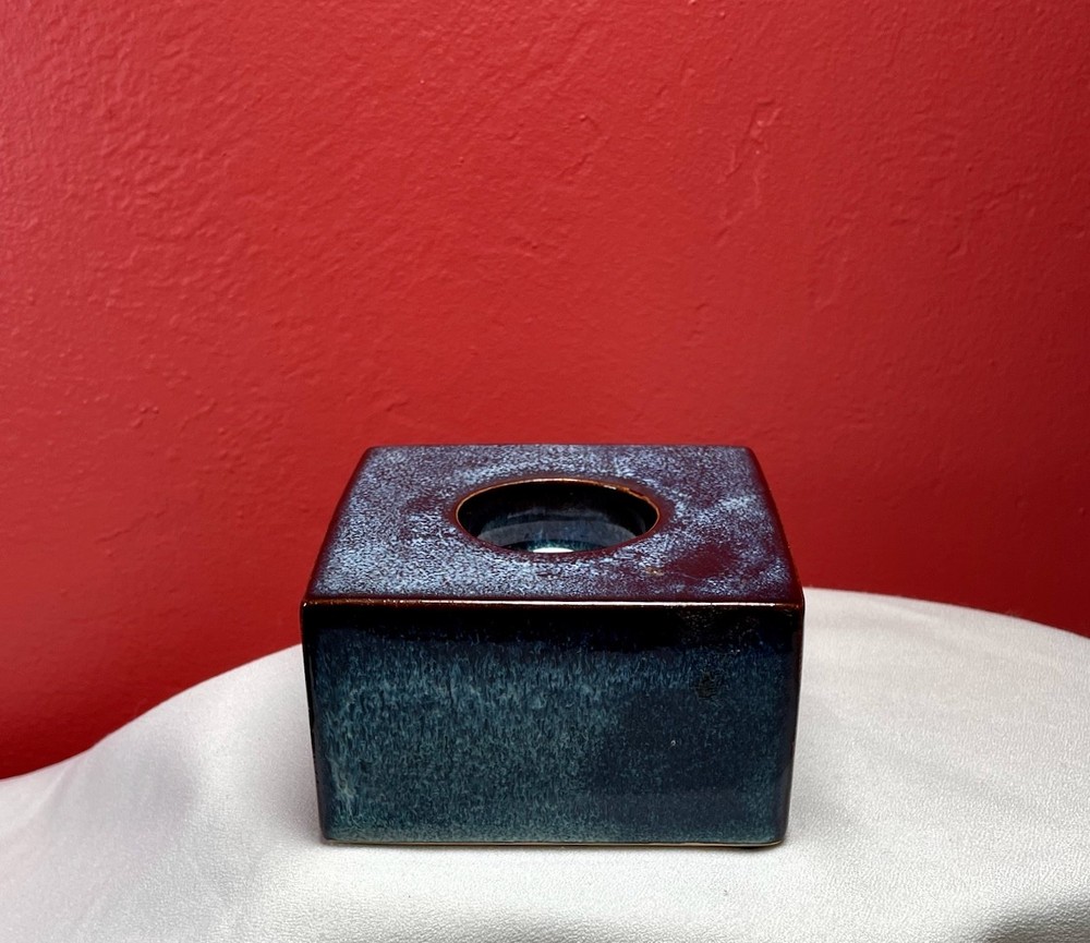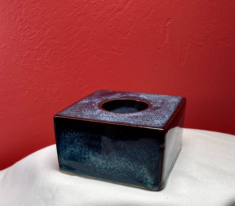 Studio Art Pottery Tea Light Candle Holder Glazed stoneware in blues with brown edges Measures approximately 3.75 in. square x 2.25in. tall No chips, cracks or sign of repair but does have 1 tiny bubble that burst and missed glazing during the manufacturing process. Also an indentation on one corner that appears to be a chip but occurred during t he manufacturing and is glazed over. See our photos for more important details as they are a part of our description. Email us with any questions Thank you for shopping with us, come back soon! Use the eBay shopping cart to purchase multiple items with a single payment. We combine shipping costs on multiple items. Pick up for local buyers always available. Check out our store (click on the little blue door). We are very knowledgable but not experts on anything, but we do our best to describe our items as accurately as possible. We are a smoke free, pet free environment but our items come from various places. Customer satisfaction is always our goal so if you encounter any problem with your purchase contact us immediately. We will do whatever we can to resolve any issues as quickly as possible. Please email your questions or requests for more information at any time. PAYMENT Payment is expected at bidding close unless you contact us and we agree to a delay. When purchasing several items, please wait for an invoice before making payment so we can adjust shipping. International Buyers: Import duties, taxes and charges are not included in the item price or shipping charge. These charges are the buyer’s responsibility. Please check with your country’s customs office to determine what these additional costs will be prior to bidding or buying. SHIPPING Shipping weight for this item will be approximately 2 pounds. Shipping is determined by the buyers zip code and packaged weight. Generally, your item will be shipped the day payment is received but we guarantee to ship within three days of receipt of payment. If there is any delay, you will be notified by email. Free ship to all APO addresses. Pick up for local buyers always available. Check out our store (click on the little blue door). Please…add us to your favorites list! Have a wonderful day and come back and shop with us again.