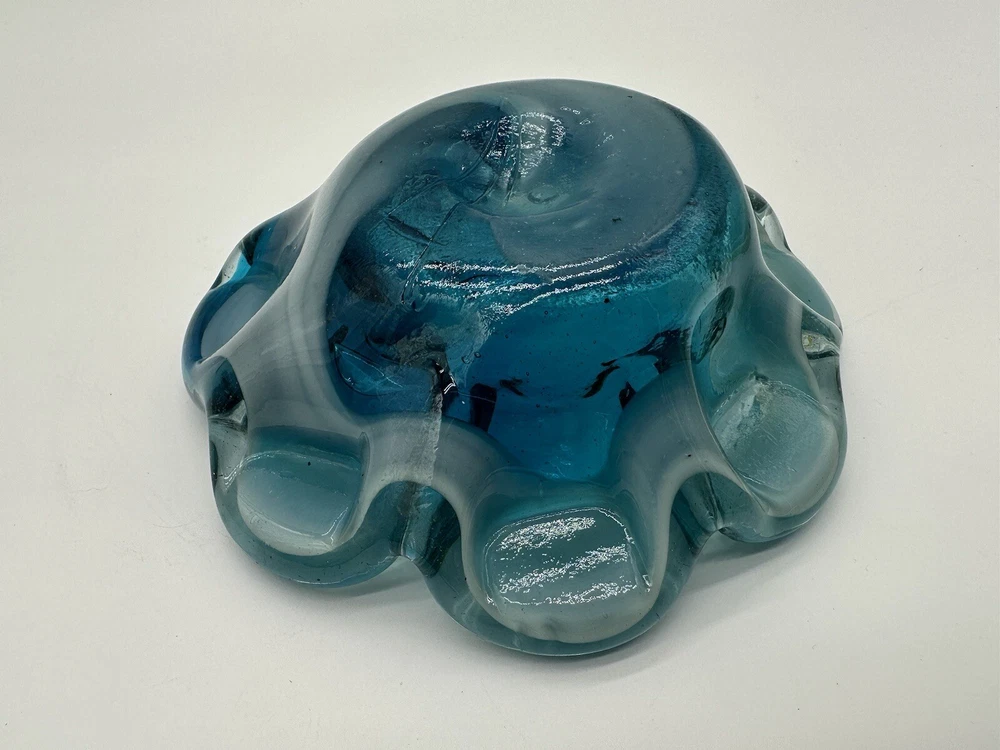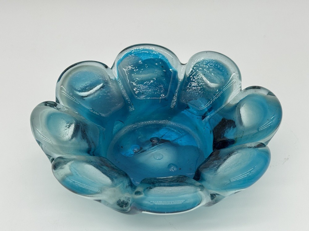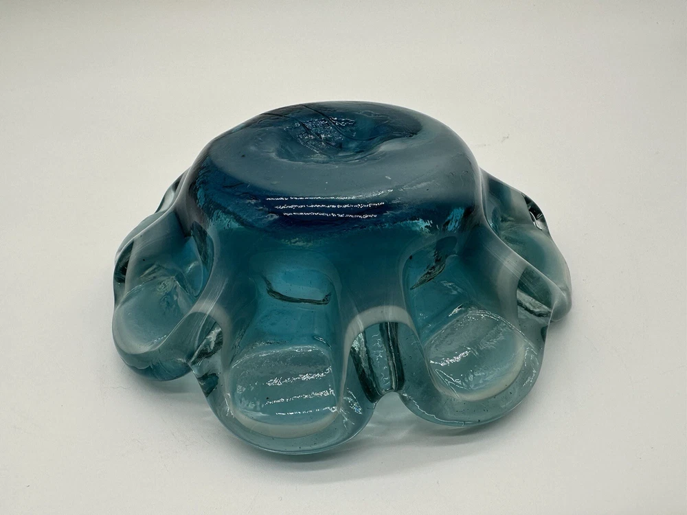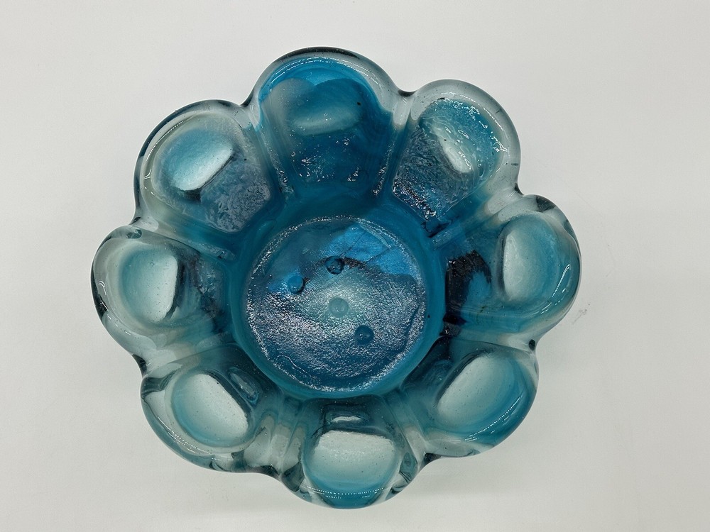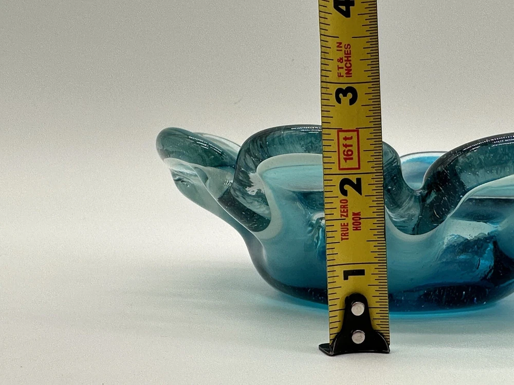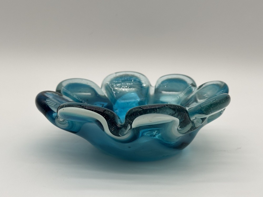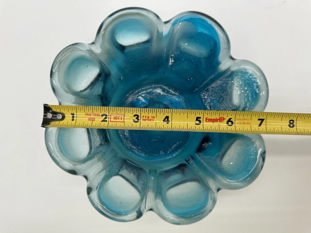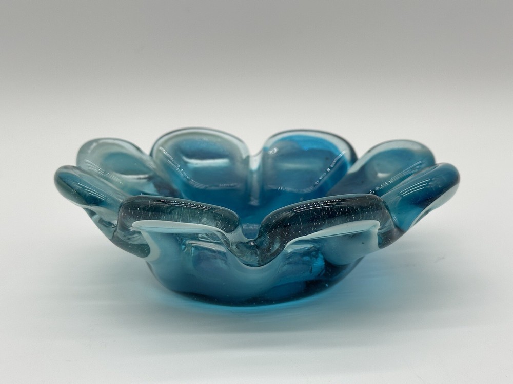 This stunning teal blue flower-shaped bowl is a must-have addition to your collection. Crafted with care in a studio, this bowl showcases mid-century modern style, with a beautiful flower shape that will add charm to any room. Made of high-quality glass, this decorative bowl is perfect for storing trinkets, candy, or any other small items you desire. The bowl measures 2.5 inches in height and 7 inches in width, making it a perfect size for various uses. The blue color and flower theme add to its beauty, while the Candy brand ensures its quality. Add this art glass bowl to your collection and enjoy its beauty and practicality.