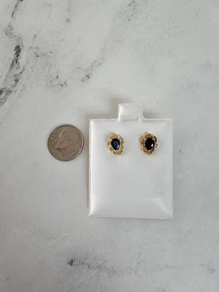 Teardrop Sapphire Studs with Diamond Accent 14K Yellow Gold ♥ Product Summary ♥ Main Stone: Sapphire Stone Cut: Pear Material: 14k Yellow Gold Backing: Butterfly Gemstones are Natural. Not enhanced, simulated or lab created. FREE SHIPPING IN THE U.S. We ship all items within 1-3 business days after payment. Deliver anywhere in US via USPS Ground Advantage or FedEx Express Saver. Next Day Air available for additional fee. International Delivery is available for an additional fee. RETURNS/EXCHANGES We want you to be completely satisfied with your purchase. If for any reason you are not satisfied we will gladly accept returns and exchanges within 30 days after delivery.