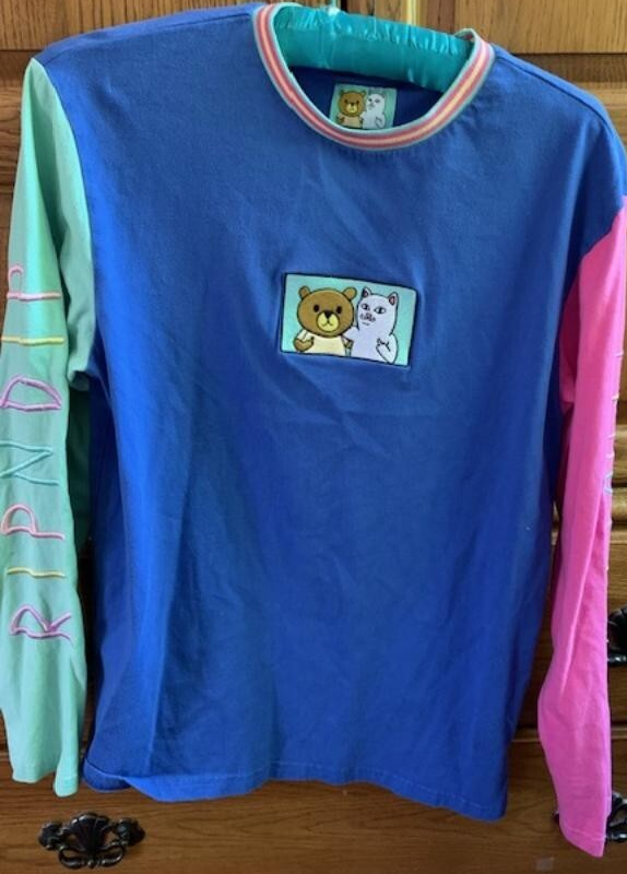 Teddy Fresh x Rip N Dip Cat Bear Embroidered L Colorblock Long Sleeve T-Shirt Lord Nermal Funny Blue Green Pink Colorful Graphic Tee Please see photos. Feel free to ask any questions....