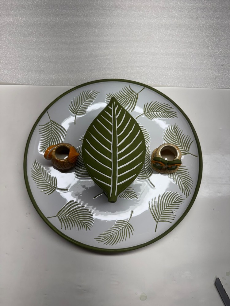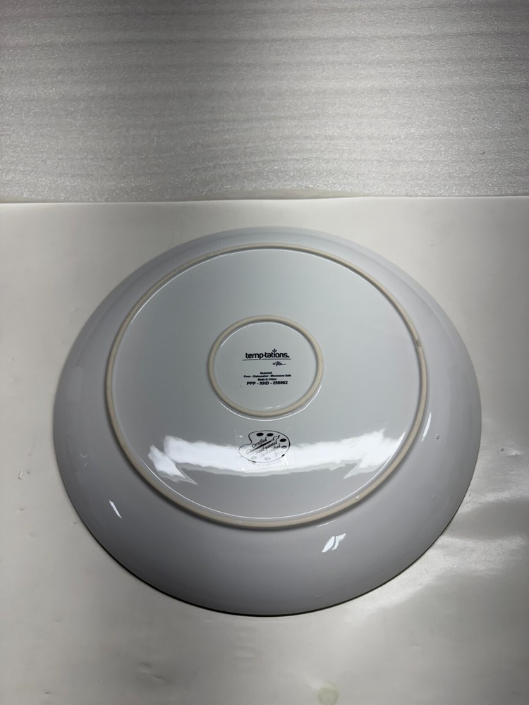 Elevate your party essentials with the TEMPTATIONS Appetizer Tray, perfect for serving chips and dip or a variety of hors d'oeuvres. This large, round ceramic tray boasts a stylish Art Deco design with a colorful botanical theme that will complement any festive occasion, from Christmas gatherings to casual get-togethers. Crafted for convenience and elegance, the tray features multiple compartments to keep your snacks and dips organized and accessible. Its durable ceramic material ensures easy cleanup while its multicolor palette adds a touch of vibrancy to your table setting. The set includes five pieces, making it an ideal choice for hosting or gifting to the entertainer in your life. Brand New Opened to take pictures. Cover with original packaging.