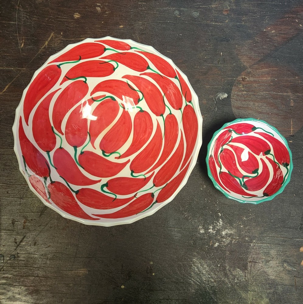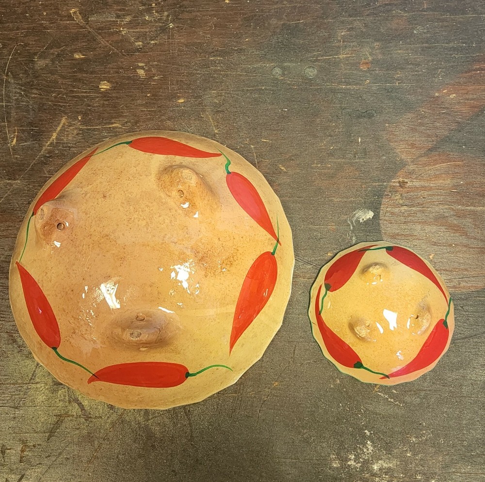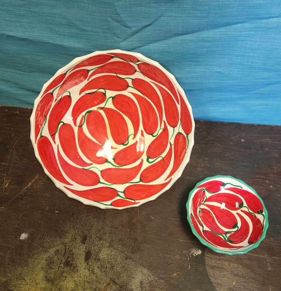 Large bowl, 9.5" Small bowl 4.5" ***MAKE SURE TO CHECK OUT ALL THE PICTURES & USE THE ZOOM OPTION TO BETTER DETERMINE CONDITION*** IF YOU HAVE ANY QUESTIONS, PLEASE FEEL FREE TO ASK! Please read policy section before bidding or buying. **** Payment is expected within 3 days of auction end **** If payment is not received by the fourth day and no communication has been made, an eBay case will be opened automatically. ***BEST OFFERS*** If you make an offer, please keep an eye on your email or eBay home page. We try to respond to Best Offers as fast as possible*** ***SHIPPING*** We always ship within 1 business day after payment clears. Combined shipping is available so be sure to check out our store. I am listing new and unique items weekly. We ship ALL over the WORLD and we ONLY ship to confirmed addresses with PayPal/eBay- No Exceptions. ***LISTINGS*** We try our hardest to list everything as accurately as possible; however, we list many pre-owned and vintage items so please take a close look at the pictures for a more accurate description. If we notice some ?flaws? or issues with an item I will list it in the description and try to get a better picture of the issue. Pre-owned clothes, toys, etc? may have some wear from usage. Clothes have been washed using Tide Free, no dyes or scents but have not been ironed. Vintage items will most likely have some wear due to age. *****I am not collectors so an item that may be in ?great? condition to us may only be ?good? to you. If you have specific questions about condition or anything else about an item, please ask before bidding***** I will answer all questions within 24 hours and usually MUCH sooner. While I am a pet & smoke free home, our items come from multiple sources so we cannot guarantee that they were always in a pet & smoke free home. ***RETURNS*** We offer FULL money back for returns, but ONLY if the item was heavily misrepresented in the listing. However if you have changed your mind about your purchase, ie: size, fit, color, etc., I will issue a refund but buyer pays shipping both ways. A refund of the original purchase price, minus the shipping or restocking fee, will be issued via PayPal after we receive the item back. *****If you are not satisfied with your purchase, PLEASE let us know as soon as possible so we can make things right. I am not like most sellers on eBay- I am ALWAYS willing to work with our buyers. I am a single mother owned and operated business***** We charge a 20% restocking fee on all remorse returns.