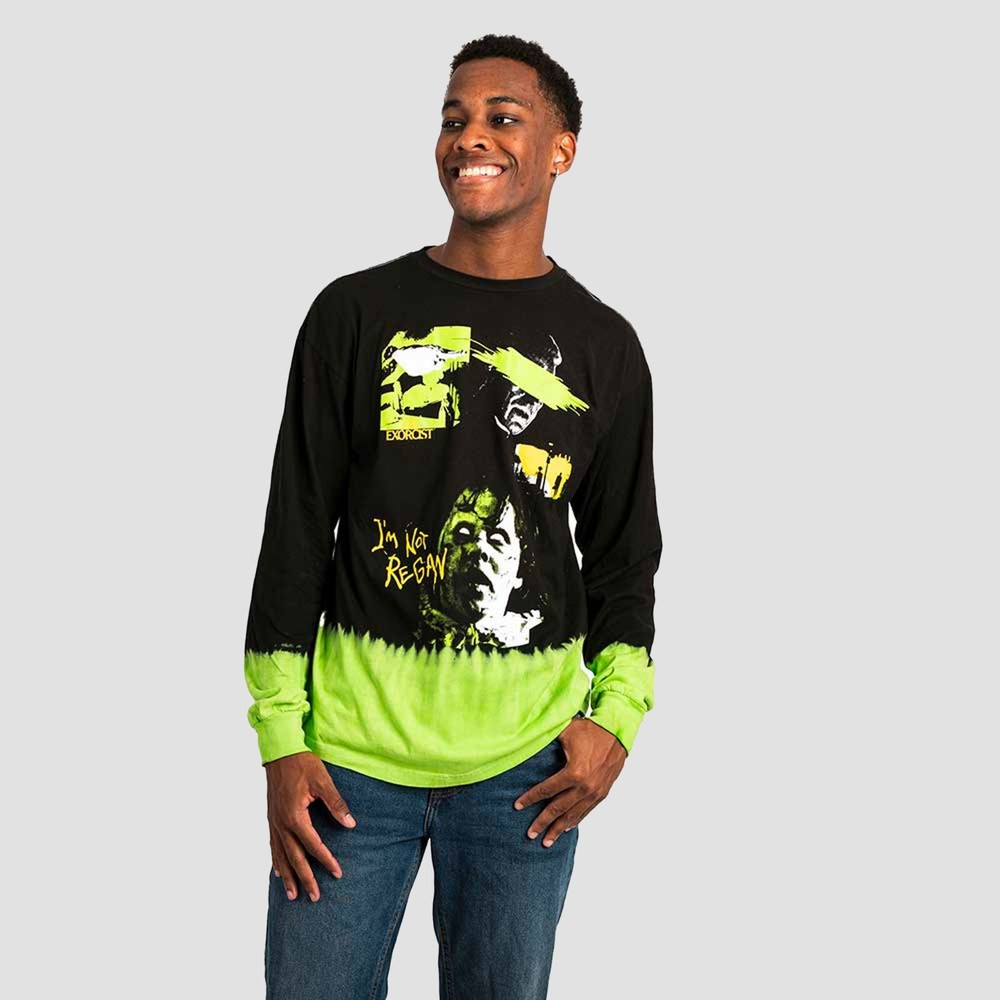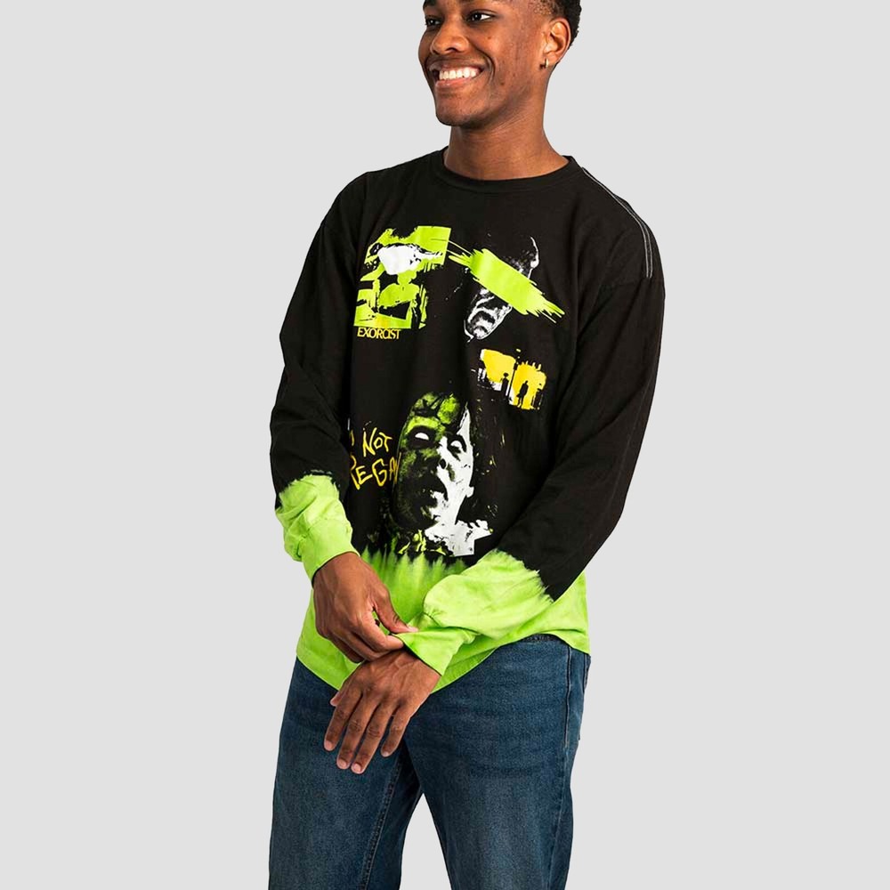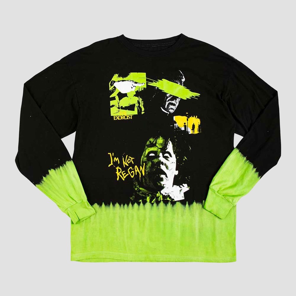 The Exorcist Dip Dyed Long Sleeve Shirt Show off your inner horror movie fan in this The Exorcist-themed long sleeve shirt! Featuring iconic scenes from the movie, this graphic long-sleeved tee has a unique dip dye look that'll send chills up your spine (in a good way).More Details: Officially licensed The Exorcist apparelGraphic print shirt against black and green Traditional unisex fit top with standard adult sizing.Machine wash cold with like colors, tumble dry low. Show off your inner horror movie fan in this The Exorcist-themed long sleeve shirt! Featuring iconic scenes from the movie, this graphic long-sleeved tee has a unique dip dye look that'll send chills up your spine (in a good way). More Details: Officially licensed The Exorcist apparel Graphic print shirt against black and green Traditional unisex fit top with standard adult sizing. Machine wash cold with like colors, tumble dry low. eBay integration by