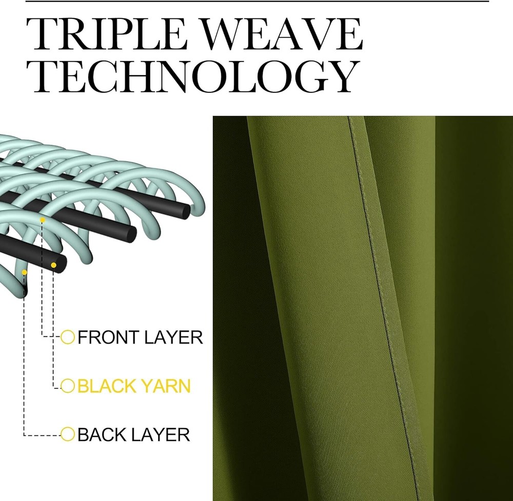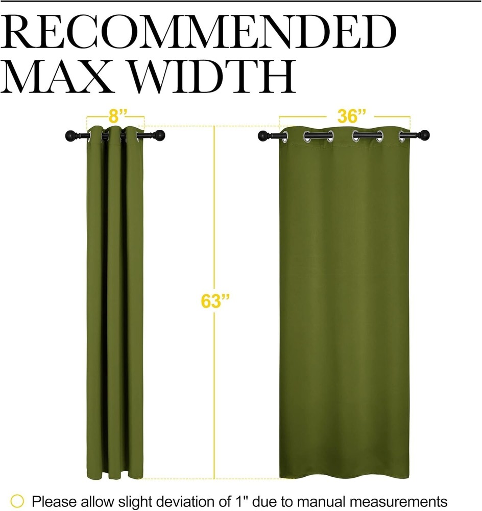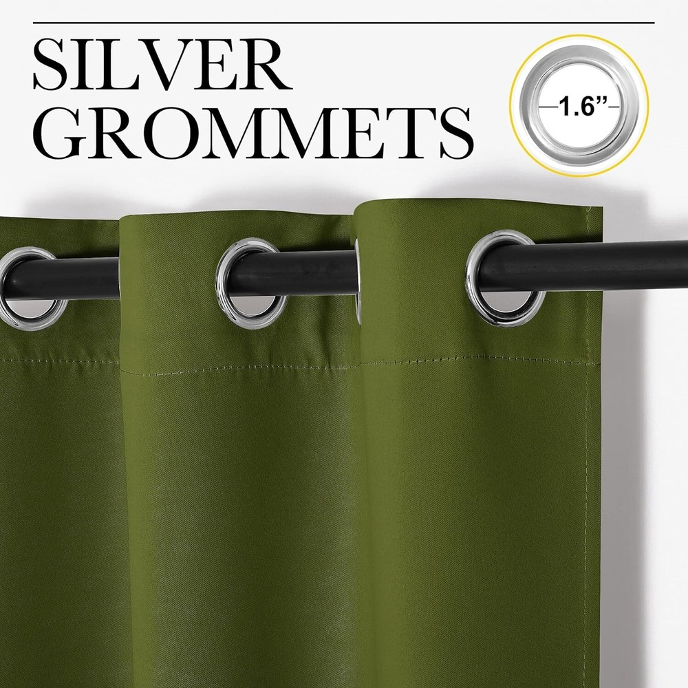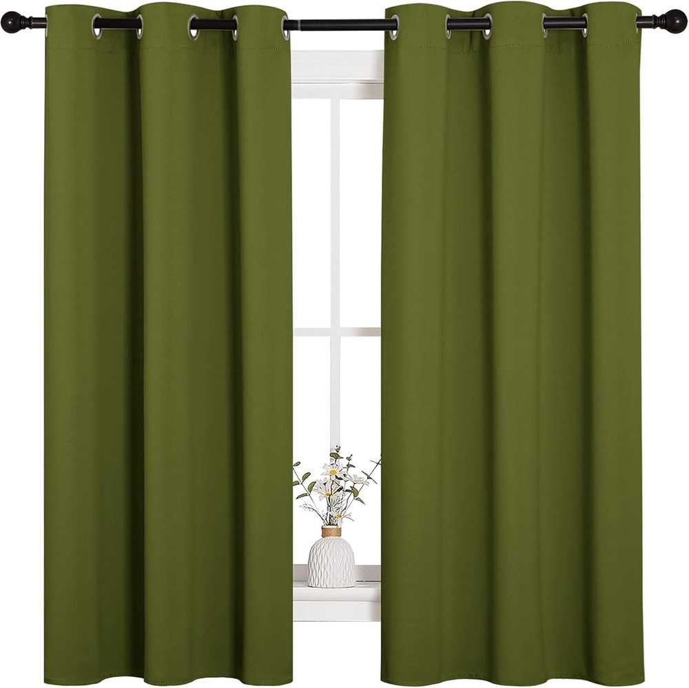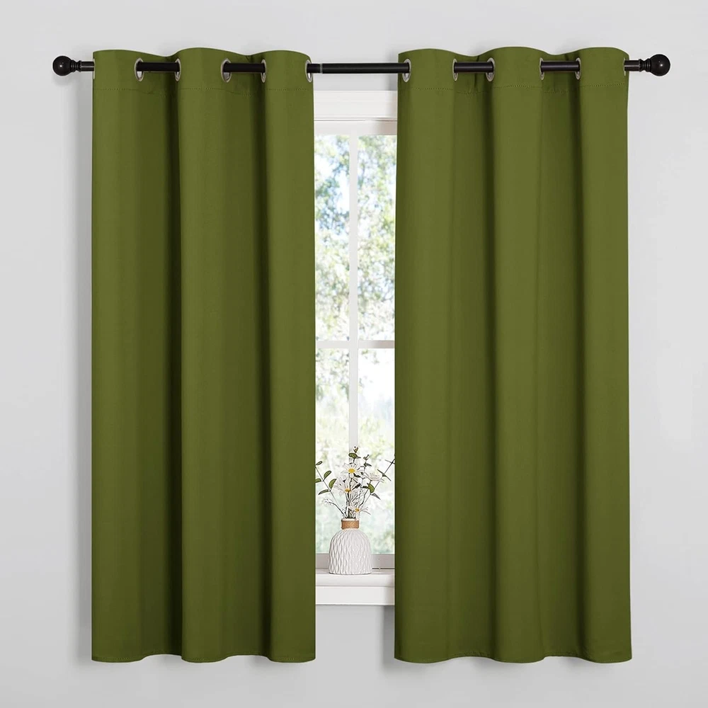NEW OLIVE GREEN THERMAL INSULATED SOLID GROMMET BLACKOUT CURTAINS 42"X63" 2 PANELS By Nicetown Brand New Size: 42in x63in Color: Green Set includes 2 blackout curtain panels; each 42" wide x 63" length with 6 silver grommets. Quality fabric that feels soft and heavy. Curtains impede 85%-99% light and UV rays. Noise- reducing, thanks to the innovative triple weave technology. They're Energy Smart. Triple weave blackout fabric balances room temperature by insulating against summer heat and winter chill. Protect your furniture, floors, and artwork from the ravages of the sun. Thread trimmed and wrinkle-free, ring (1.6-inch inner diameter) fits easily with standard curtain rods. NICETOWN blackout curtains are made to last. Machine washable in cold water, tumble dry. Quick ironing or steam clean when needed. Questions encouraged. Combined shipping available when multiple items are paid together. FAST SHIPPING! Although I try to ship the next day, please allow up to 3 business days for item to ship. Add us as one of your FAVORITE sellers so you don't miss any of our FANTASTIC deals! Exclusive offers for our "Followers", so click the "Save Seller" button NOW! Hassle free returns! Like what you see? Additional items listed daily, so check back often. Looking for something specific? Ask me. Thank you for taking time to look through our items. You are truly important and valuable to us!