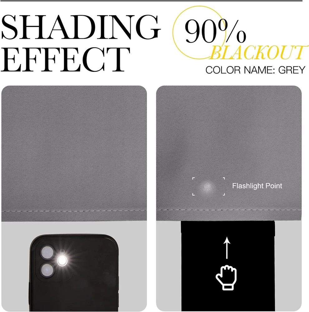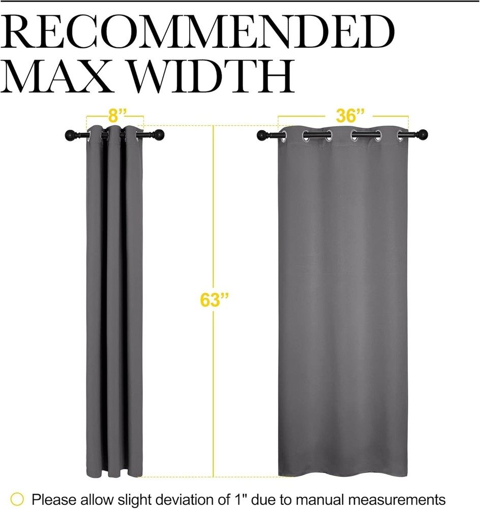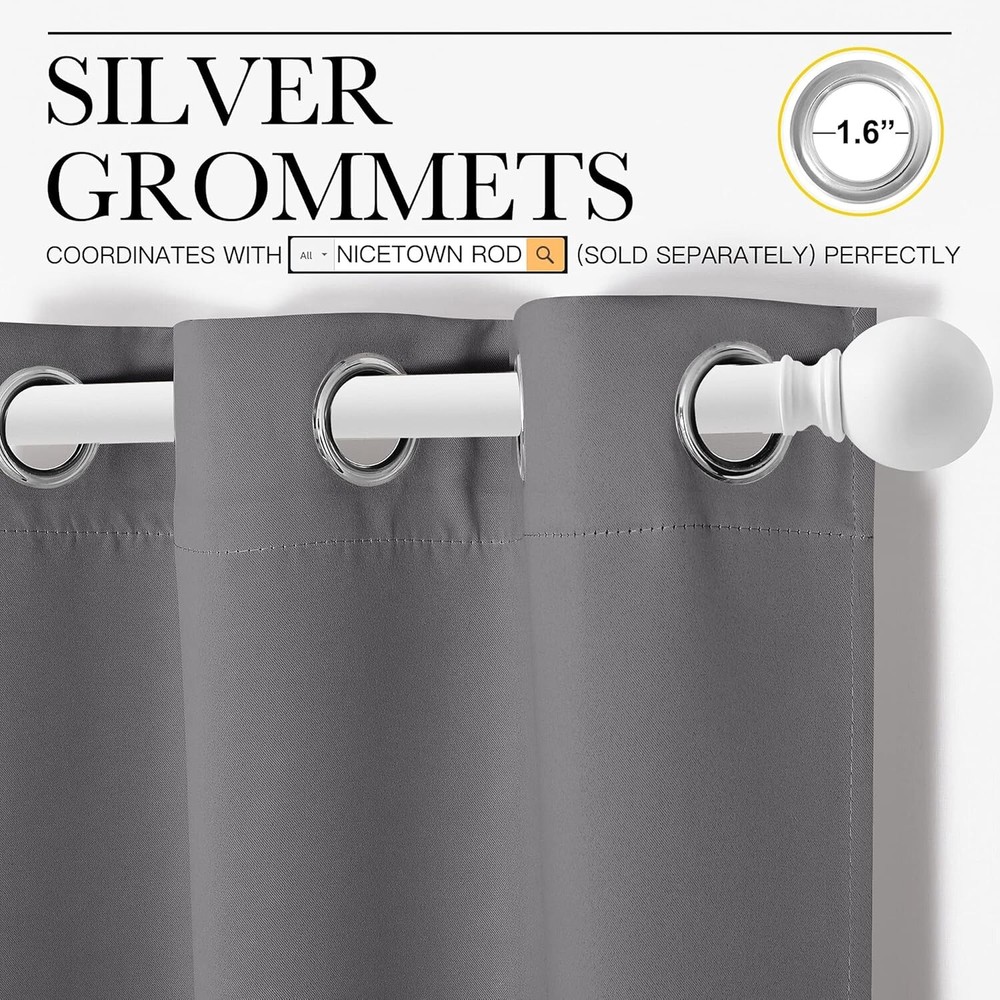 Color Grey Material Polyester, Polyester Blend Product Dimensions 63"L x 42"W Opacity Blackout About this item Polyester READY MADE: Set includes 2 BLACKOUT CURTAINS PANELS of 42" wide x 63" length with 6 grommets top each. Quality fabric without liner feels soft and heavy. SERVE WELL: Curtains impede 85%-99% light and UV rays(Dark color curtains work well). Noise-reducing, better TV viewing thanks to the innovative triple weave technology. ENERGY SMART: Triple weave blackout fabric balances room temperature by insulating against summer heat and winter chill. Protect your furniture, floors, and artwork from the ravages of the sun, the drapes will pay for themselves off over time. GOOD TO GO: Thread trimmed and wrinkle-free, ring (1.6-inch inner diameter) fits easily with standard curtain rods. All sets for you to put them up right away. EASY TO MAINTAIN: NICETOWN blackout curtains are made to last. Machine washable in cold water, tumble dry. Quick ironing or steam clean when needed. Visiting the NICETOWN store, find out your favorite curtains.