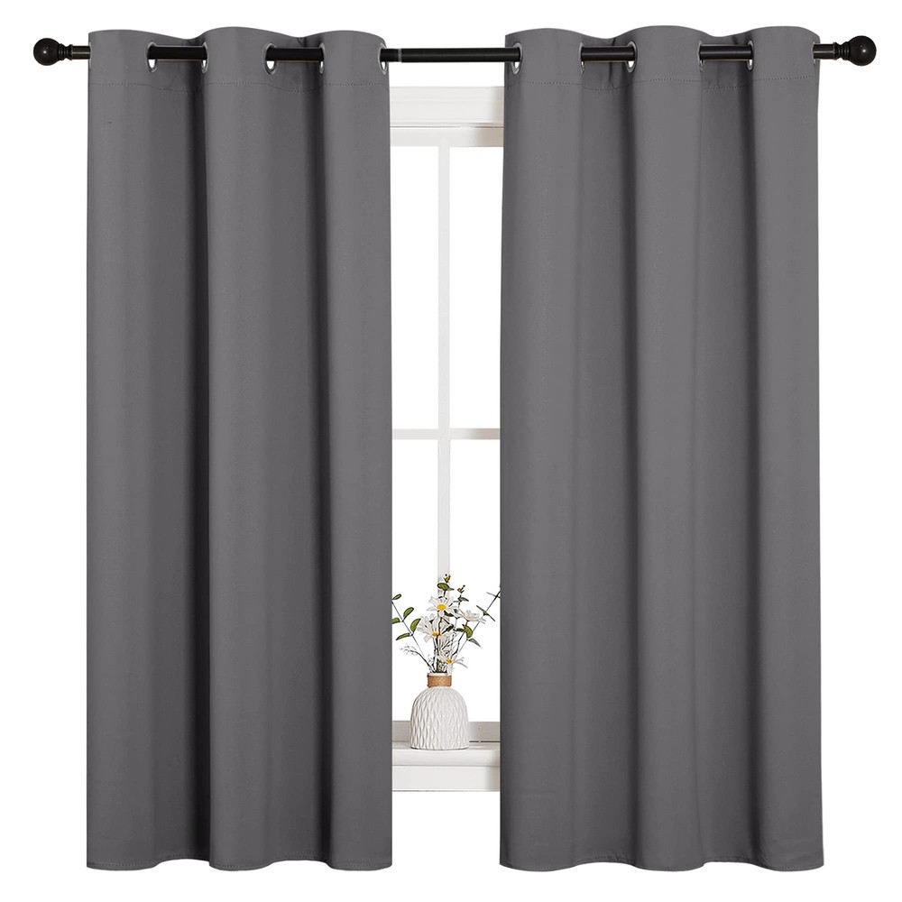 READY MADE: Set includes 2 BLACKOUT CURTAINS PANELS of 42" wide x 63" length with 6 grommets top each. Quality fabric without liner feels soft and heavy. SERVE WELL: Curtains impede 85%-99% light and UV rays(Dark color curtains work well). Noise-reducing, better TV viewing thanks to the innovative triple weave technology. ENERGY SMART: Triple weave blackout fabric balances room temperature by insulating against summer heat and winter chill. Protect your furniture, floors, and artwork from the ravages of the sun, the drapes will pay for themselves off over time. GOOD TO GO: Thread trimmed and -free, ring (1.6-inch inner diameter) fits easily with standard curtain rods. All sets for you to put them up right away. EASY TO MAINTAIN: blackout curtains are made to last. Machine washable in cold water, tumble dry. Quick ironing or steam clean when needed. Visiting the , find out your favorite curtains.
