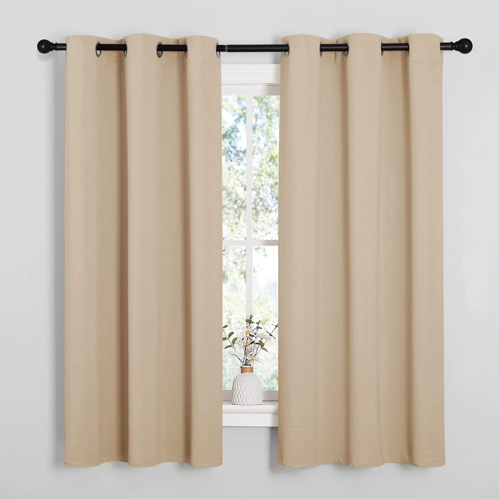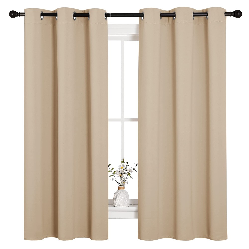 NICETOWN Blackout Curtains are so much more than just bits and pieces of fabric that are sewn together to prevent sunlight from entering your home, they go beyond that mundane function and provide additional benefits that do not meet the eye instantly. READY MADE: Set includes 2 BLACKOUT CURTAINS PANELS of 42" wide x 63" length with 6 grommets top each. Quality fabric without liner feels soft and heavy. SERVE WELL: Curtains impede 85%-99% light and UV rays(Dark color curtains work well). Noise-reducing, better TV viewing thanks to the innovative triple weave technology. ENERGY SMART: Triple weave blackout fabric balances room temperature by insulating against summer heat and winter chill. Protect your furniture, floors, and artwork from the ravages of the sun, the drapes will pay for themselves off over time. GOOD TO GO: Thread trimmed and wrinkle-free, ring (1.6-inch inner diameter) fits easily with standard curtain rods. All sets for you to put them up right away. EASY TO MAINTAIN: NICETOWN blackout curtains are made to last. Machine washable in cold water, tumble dry. Quick ironing or steam clean when needed. Visiting the NICETOWN store, find out your favorite curtains.