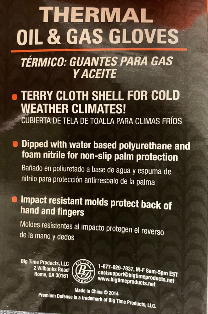 Thermal Gloves for use in Oil & Gas Industry Impact resistant back Nitrile dipped palm Terry cloth lined...