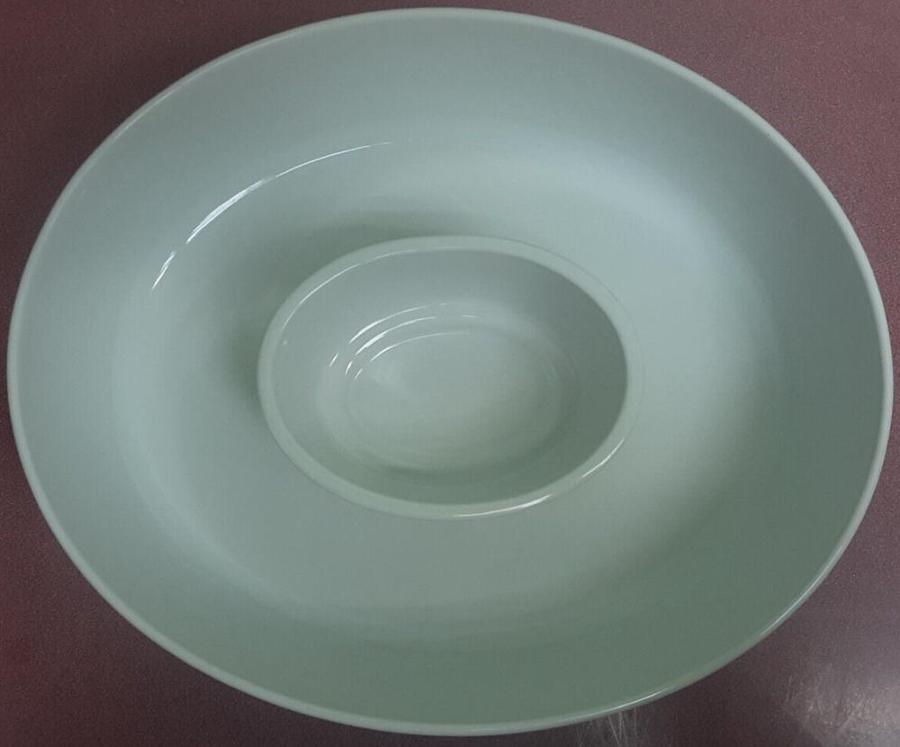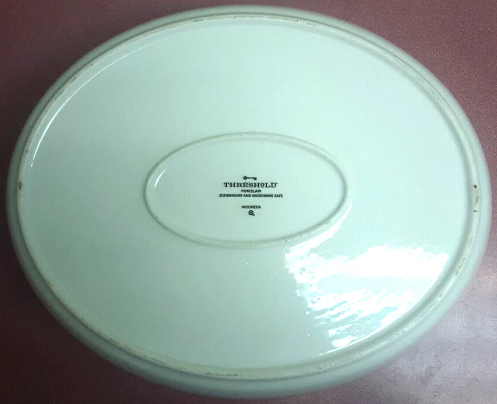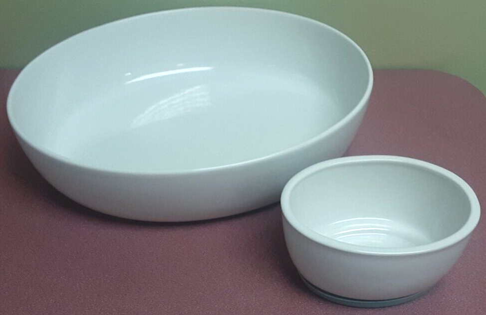 'Threshold' Large 13" and Small 6" Oval Chips and Dip Bowls Porcelain Dishware These pieces are part of my Aunt's vast and eclectic collection and Estate that I am currently liquidating. This set of chips and dip bowls is pre-owned and in excellent overall condition, as you can see from the photos above there are no signs of wear or aging to the porcelain of the dishes at all. The white color is pristine and like-new. Both the bowl large in size as well as the smaller one, are both convenient since they are dishwasher and microwave safe. The smaller bowl even has a removable silicon bottom to prevent scraping on any surface. Great quality dishes for all kinds of delicious meals, though chips and dip are what they're most used for. The large bowl measures approximately 13.5 inches long, 11 inches wide, 3 inches tall, and weighs a hefty 4 pounds 7 ounces. The smaller bowl measures approximately 6 inches long, 4.5 inches wide, 3 inches tall, and weighs just 13 ounces. Shipped with USPS Ground Advantage. *You may also want to check out Seller harmony3197 for hundreds of additional items including military patches and memorabilia, housewares, art works, and more! *We have a Buy/Sell/Trade warehouse chock full of brand-new and used items from close-outs, auctions, estate sales, and just plain old family "hand-me-downs" so if you don't see it listed on our pages just ask and we probably have it!