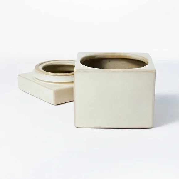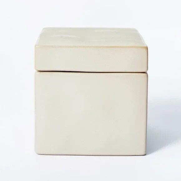 5" x 5" Ceramic Box Gray - Threshold studio McGee square decorative box ceramic stoneware storage, decor and storage plant holder. designed with Studio McGee Stoneware Box Elevate your space with the Ceramic Gray Box by Threshold designed with Studio McGee. This designed decoration piece showcases a carved pattern, adding a touch of contemporary elegance to any room. decoration boxes for living room decoration boxes for living table decoration boxes with lid decorations box