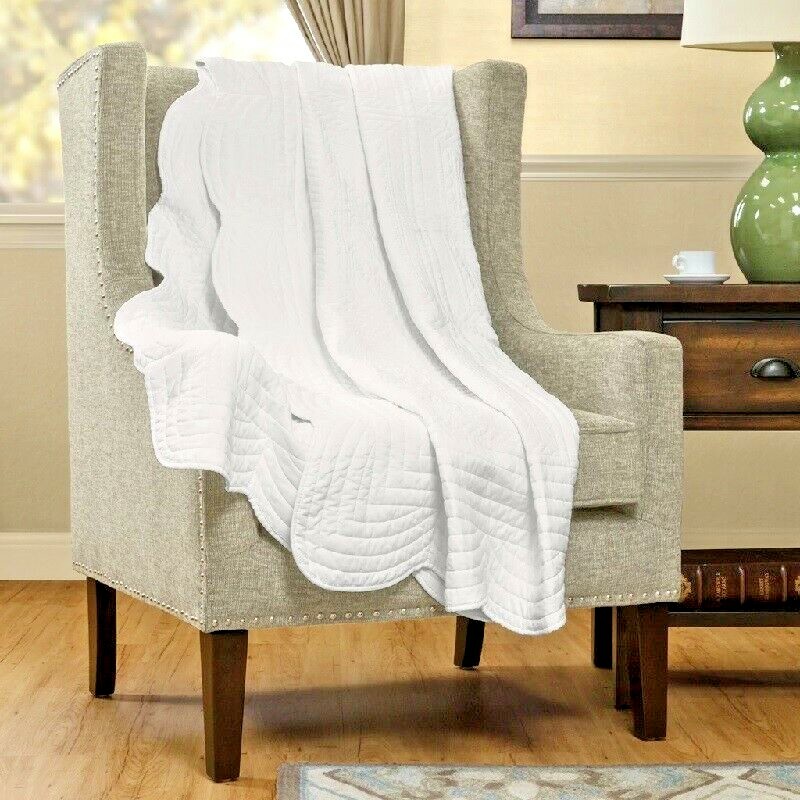 Throw Blanket Color: White Weave: Plain Construction: Quilted Filling material: 200 GSM cotton Materials: 100% polyester Care instructions: Machine wash Dimensions: 60" W x 70" L Weight: 4 Pounds This Quilted Throw Blanket is the perfect room accent for a contemporary look. The decorative stitch pattern pairs easily with your existing décor and will sure to add a new decorative element with the beautiful scalloped edges. This quilted throw is filled with cotton filling and features a polyester microfiber fabrication on the face and the reverse. The prewash finish gives a worn in appearance to this decorative throw. Click "Buy It Now" to purchase this beautiful Quilted Throw Blanket. Thank You for Visiting Have A Beautiful Day! The digital images we display have the most accurate color possible. However, due to differences in computer monitors, there may be variations in color between the actual product and your screen. Handling time is 1-3 business days after payment clears. Shipping is 3-10 business days (Most items are delivered in 3-7 business days) Business days are Monday through Friday excluding Holidays. Free Shipping within the 48 states. We only ship within the continental 48 States. Do not ship to APO/FPO or PO Boxes. 100% Money Back Guarantee. Buyer has 30 days from date of delivery to return purchase for a refund. If you wish to return an item, it's important that you contact me via eBay message, within 30 days of receipt of item. Returned items must be in original new condition with packaging and accessories. Return shipping will be paid by the buyer unless there is an issue with the listing or item is defective. If you have any questions or concerns, please do not hesitate to contact me!