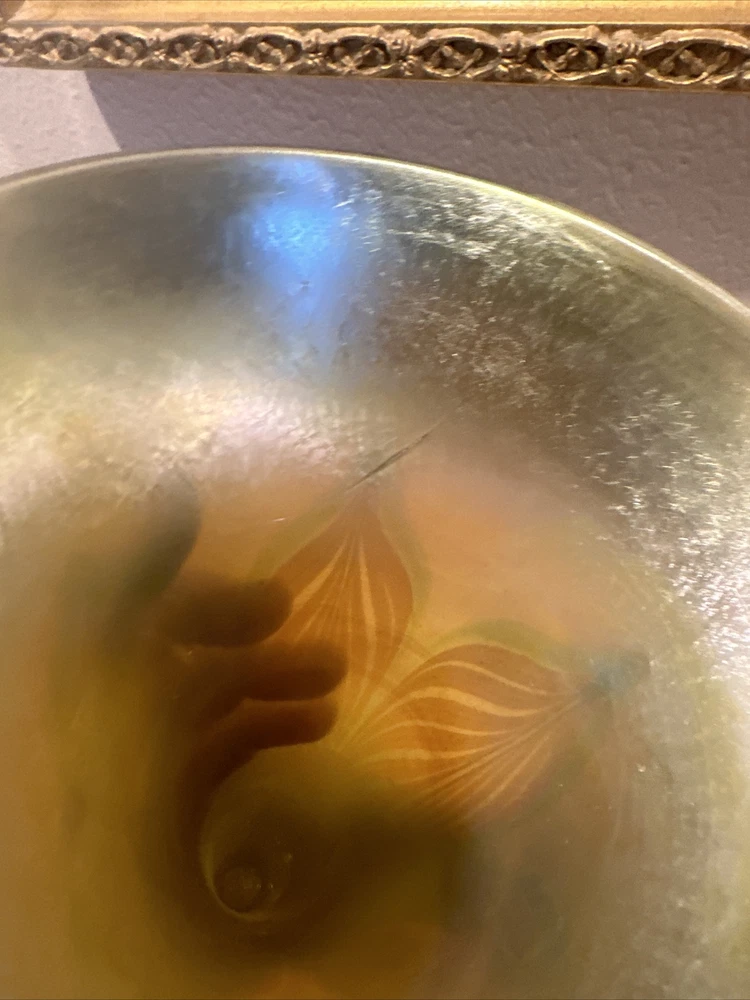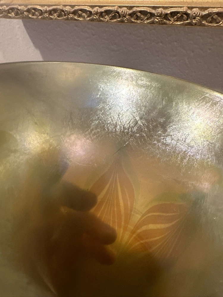 This stunning Tiffany Favrile vase is a true collector’s piece with its gorgeous pulled feather design and rich iridescence. The slight lean and minor imperfections don’t detract from its beauty—just signs of its handmade charm. The interior line is a natural part of the glassmaking process, not damage. A rare find in great condition overall!