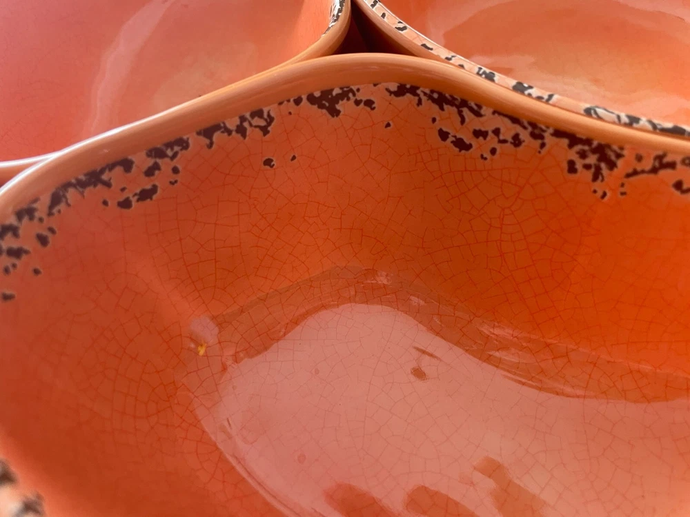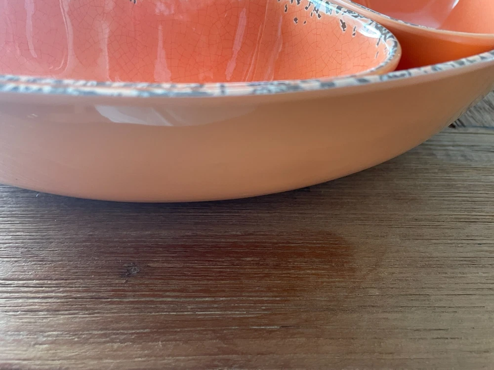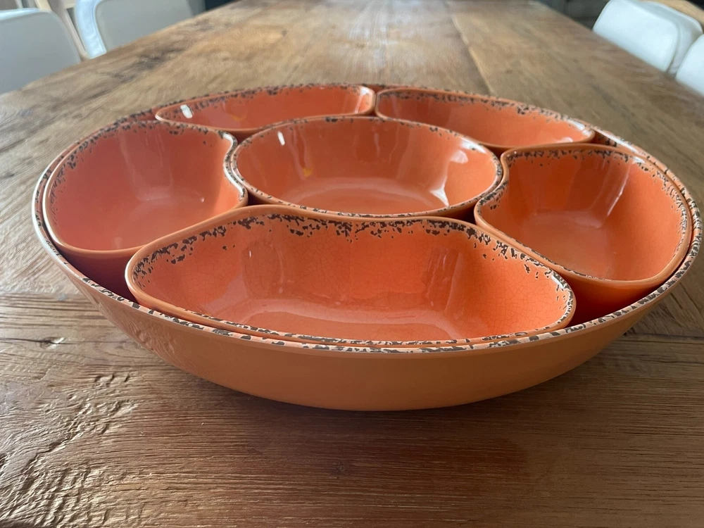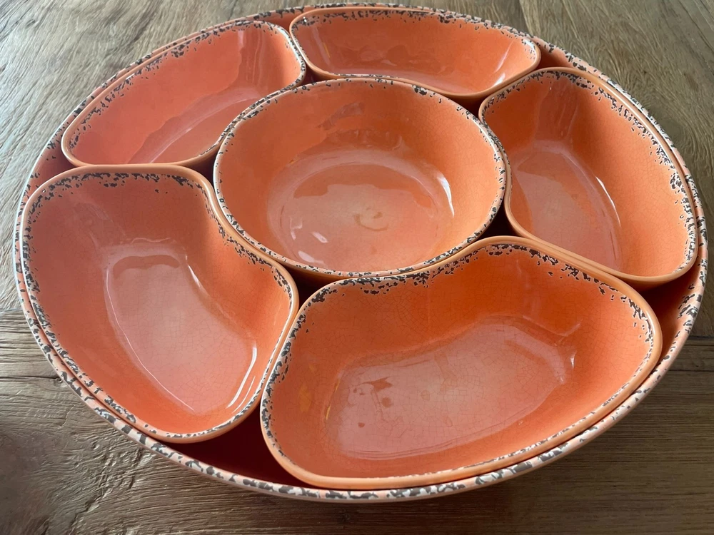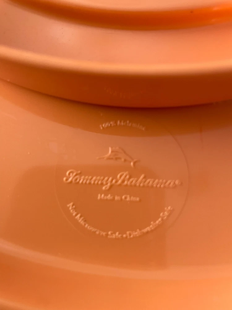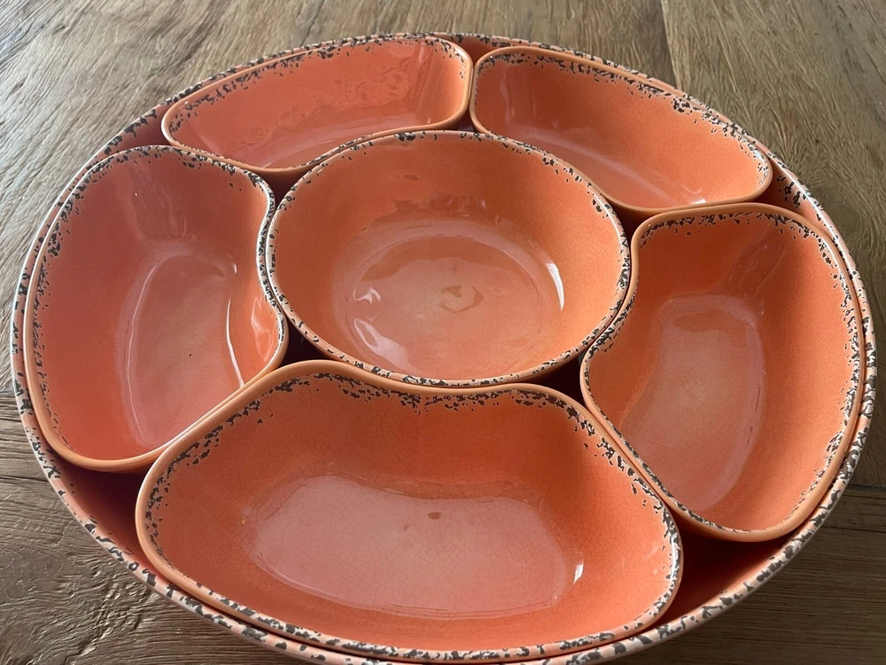 Tommy Bahama Lazy Susan Server Chip/Dip Veggies Tacos Six Compartments Coral. Lazy Susan is in excellent condition. Very useful and handy when having company or parties. Another great Tommy Piece.
