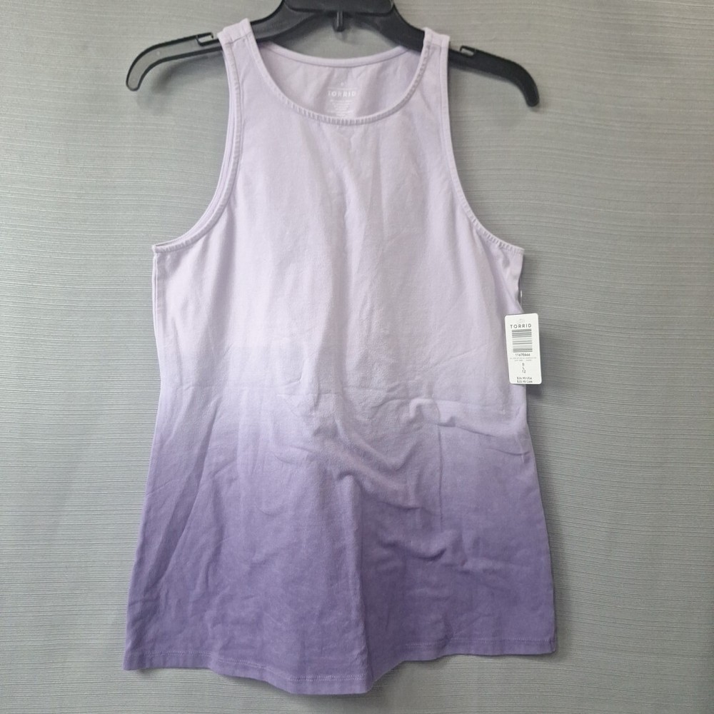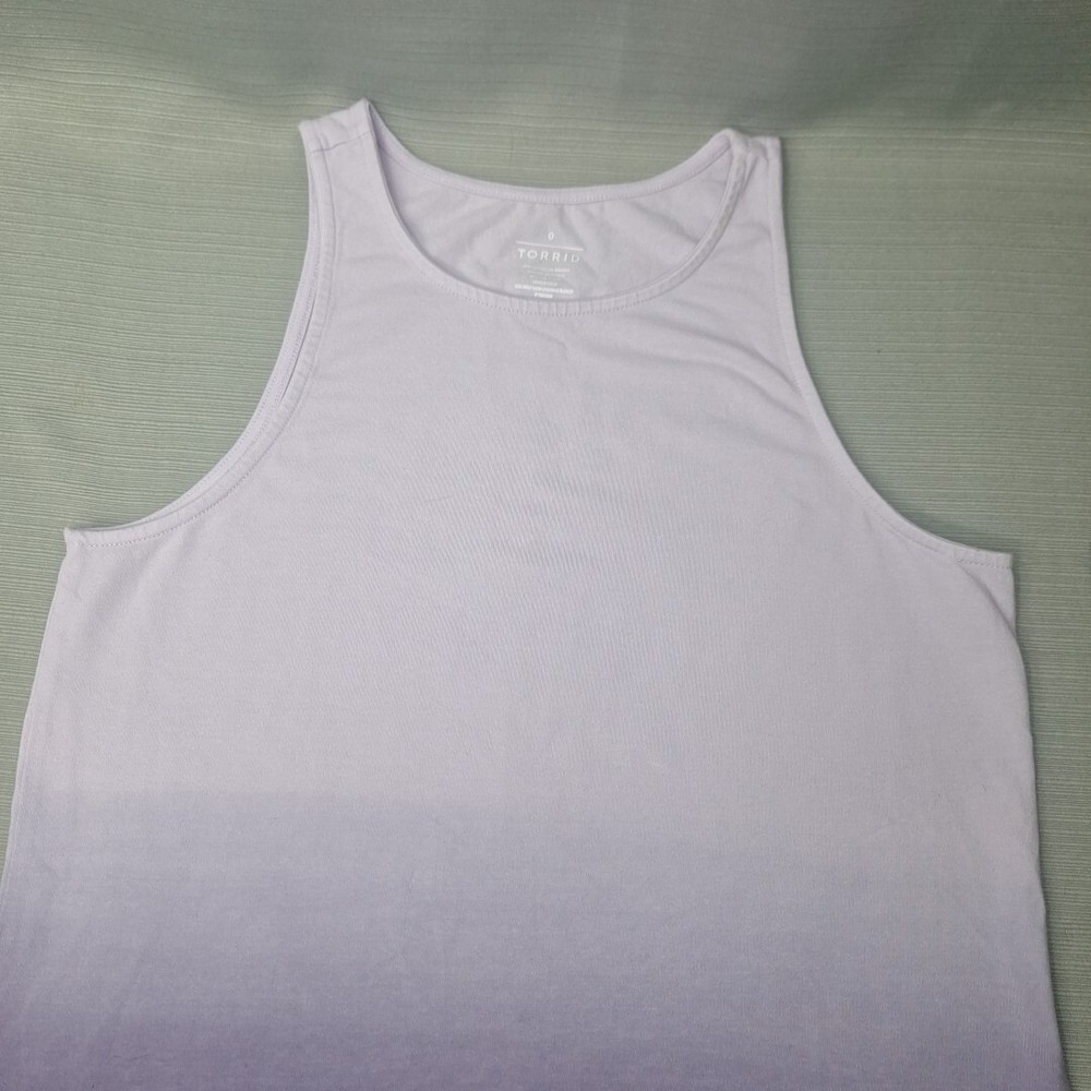 Torrid Purple Lavender Dip Dye Sleeveless Tank Top Ombre Goddess Fox Size L NWT Cotton Spandex fabric for stretch and comfort. Armpit to armpit 17", Length from shoulder to hem 26" New with tags. Please see photos.