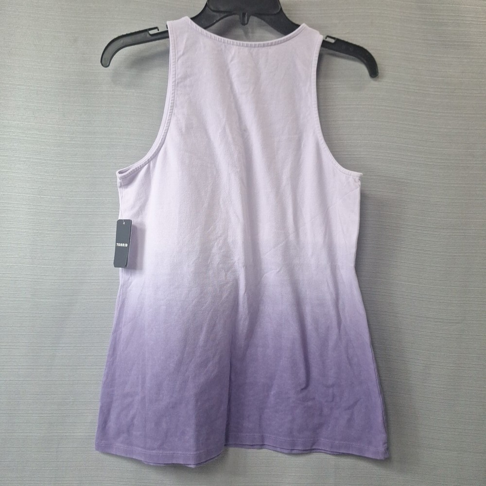 Torrid Purple Lavender Dip Dye Sleeveless Tank Top Ombre Goddess Fox Size L NWT Cotton Spandex fabric for stretch and comfort. Armpit to armpit 17", Length from shoulder to hem 26" New with tags. Plea...