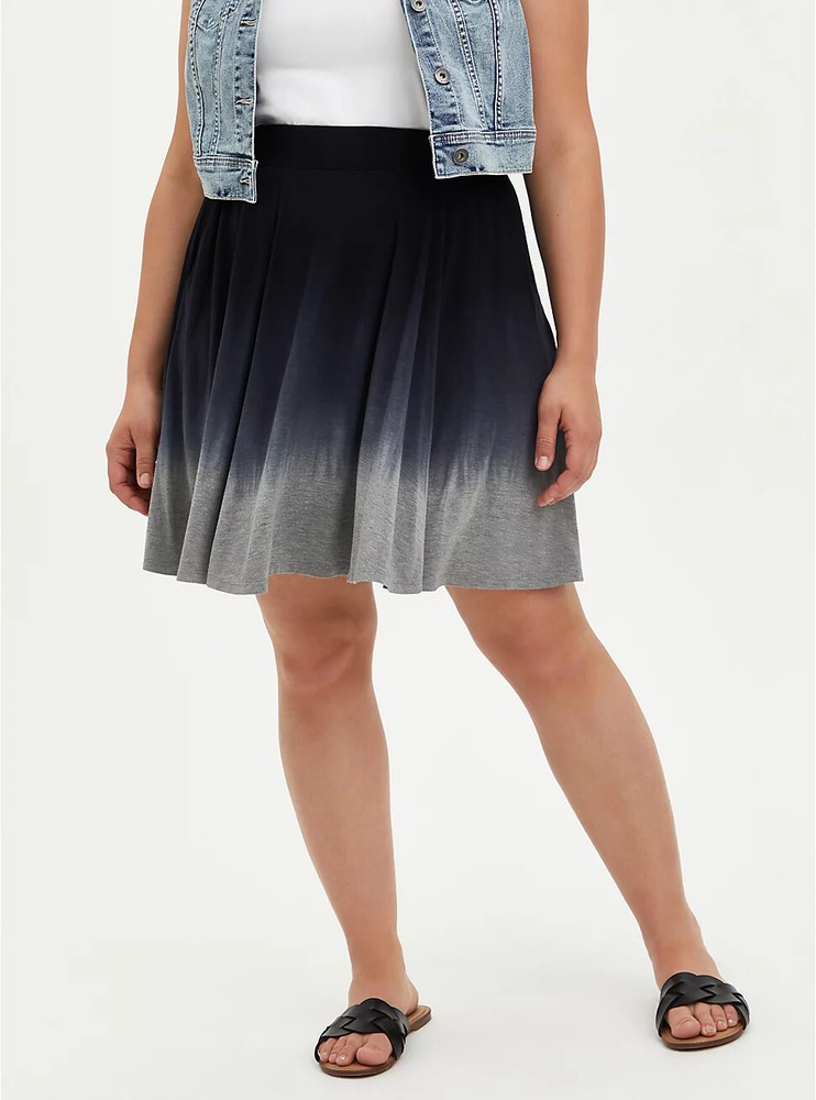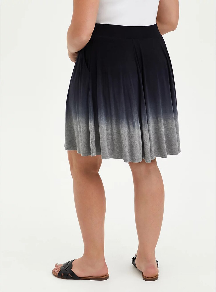 Torrid Skater Skirt Super Soft Dip Dye Black & Gray 0 L 12 #A64713 Item is brand new. Auction includes 1 skirt. FIT Model is 5'10" wearing size 1 - This is a reference to what the model is wearing in the picture. MATERIALS + CARE Super Soft knit fabric: An incredibly soft, versatile knit that hugs close to the body. 95% rayon, 5% spandex. Wash cold. Dry low. Imported. DETAILS Dip dye. Pockets.