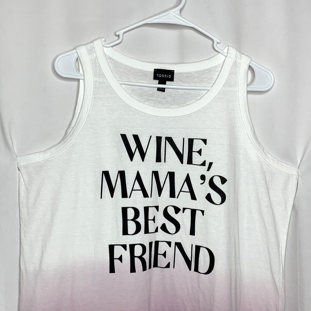 <![CDATA[<div>Torrid Womens Tank Top Size 0 Large Dip Dye Wine Mamas Best Friend New without tags. No rips, holes or stains. Please see all photos for condition. * Torrid Womens Size 0 (Womens Size Large/12) * Polyester Blend * Dip Dyed - White with Mauve/Pink * Graphic on front says "Wine, Mama's Best Friend" with solid back Approximate Flat Lay Measurements: Chest 23.5" Collar to hem 29.5"