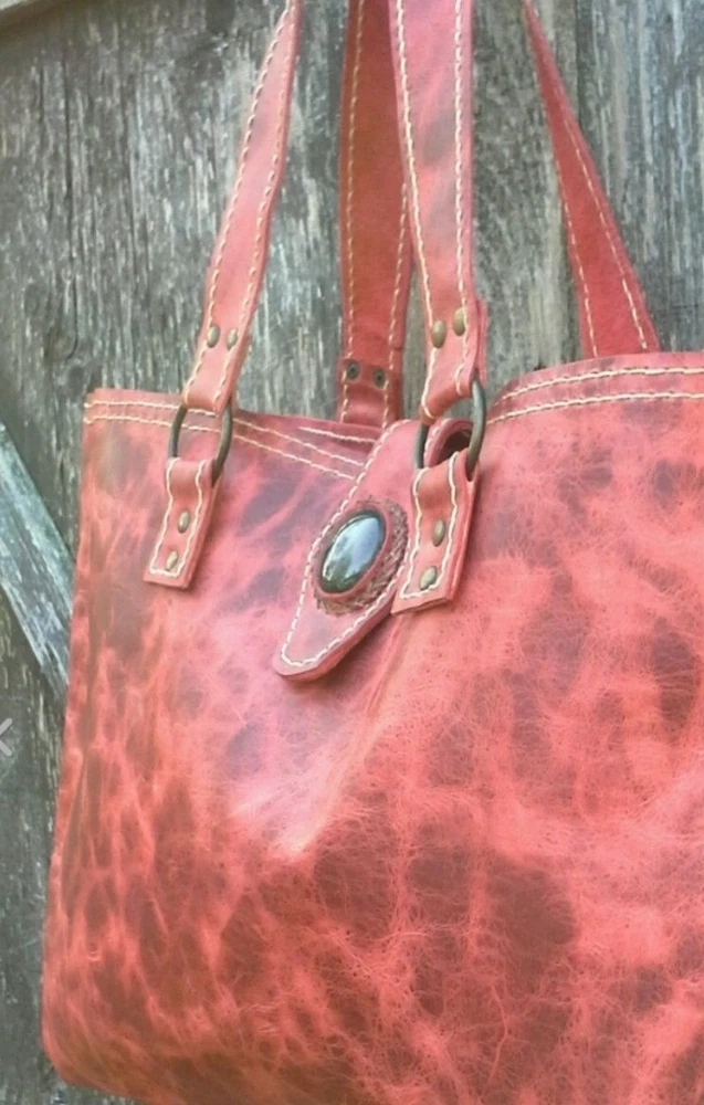 Item Description Condition: New Quantity: 1 Brand/style: Hand Made in Guatemala / Dip Dye Leather Tote Color/material: Red / Leather, Jade, Metal Other Features : Gorgeous encrusted authentic jade stone. My Notes : ♥♥♥ Rare one of a kind tote. This one has a unique brand iron mark on the leather that gives it a distinct look. As seen in the 3rd photo. So much nicer in person. A gorgeous bag that will age beautifully and last for many years ♥♥♥ Stored in smoke free environment.This item is authentic and brand new. If you are looking for high quality, you will love this item. Highlights : Dip Dye Leather Tote by Women Artisans in Gautemala This stunning leather tote is a perfect every day purse! It features a flap-over magnetic closure with a beautiful encrusted authentic jade from Gautemala. One interior wall zipper pocket. Raw leather interior. Made from genuine leather. This handbag is handmade by Mayan and Hmong women artisans in Guatemal. A percentage of your purchase is being donated to help provide jobs to women in Guatemal. • Durable Natural Leather • Encrusted authentic jade stone. • Made in Guatemala Approximate Dimensions : Length19" Height 13" Depth .5" Strap width 1.5" Handle Drop 11"
