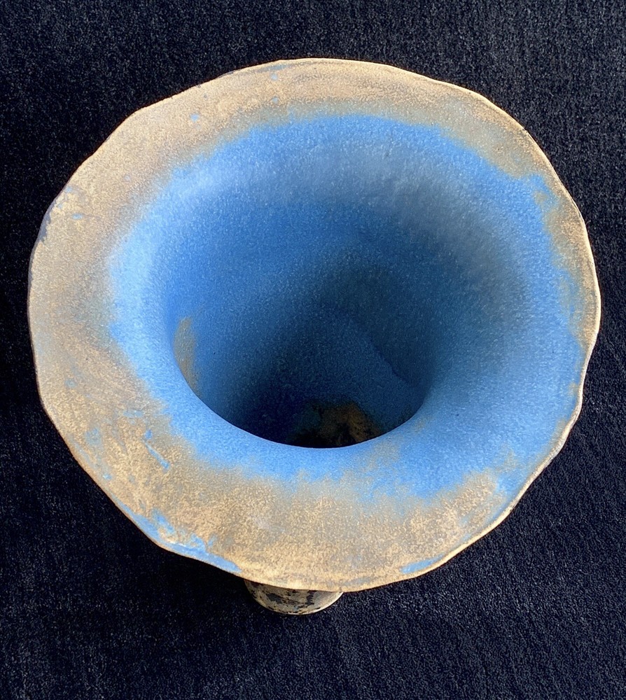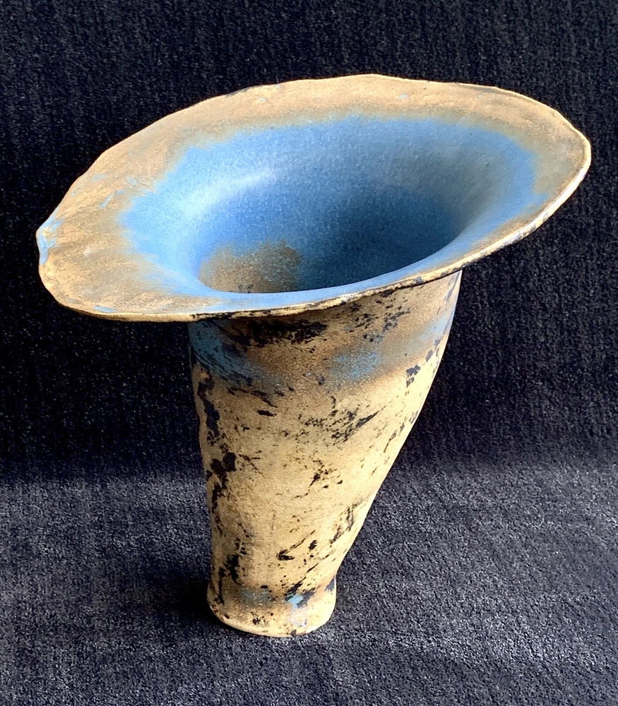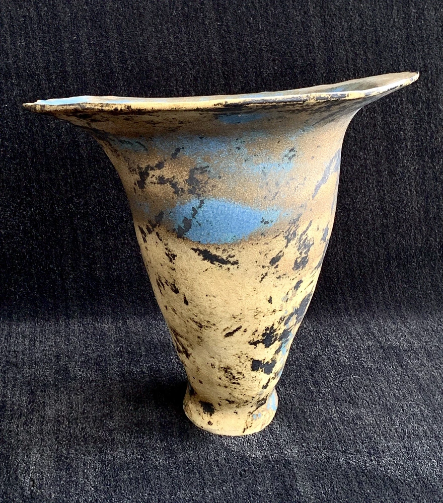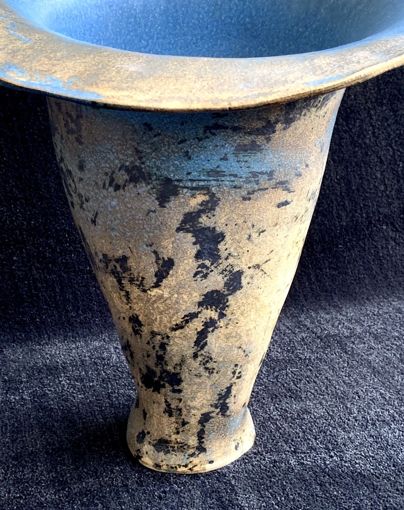 Trumpet shaped signed studio pottery signed Tsette? and dated Jan 85 on bottom measures approximately: 12 7/8" W (rim's widest point) x 13 1/2" H x 3 1/2" base diameter Please note that shipping charges are inclusive of insurance, payment processing and carrier fees. mbr1.4