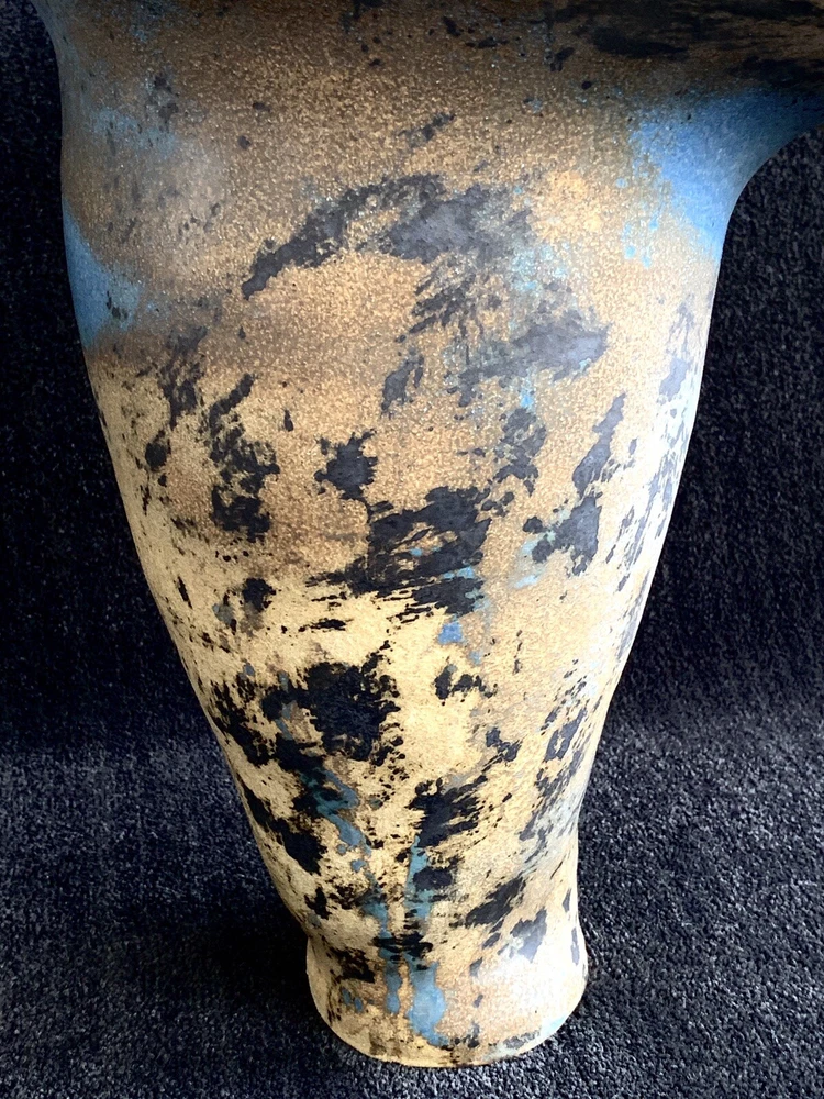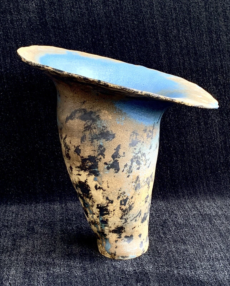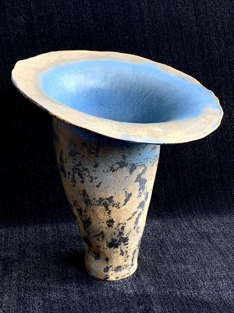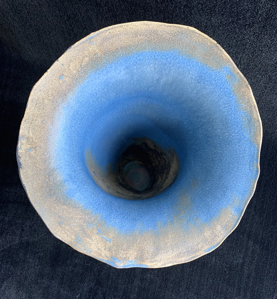 Trumpet shaped signed studio pottery signed Tsette? and dated Jan 85 on bottom measures approximately: 12 7/8" W (rim's widest point) x 13 1/2" H x 3 1/2" base diameter Please note that shipping charges are inclusive of insurance, payment processing and carrier fees. mbr1.4
