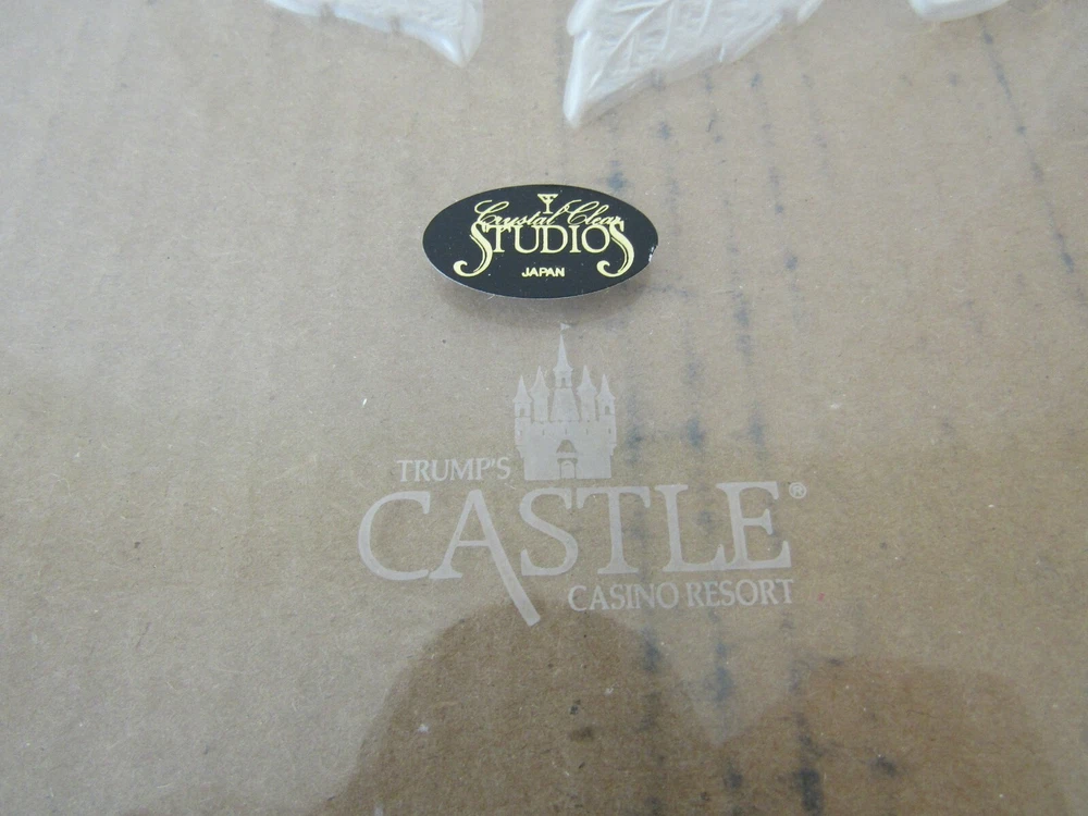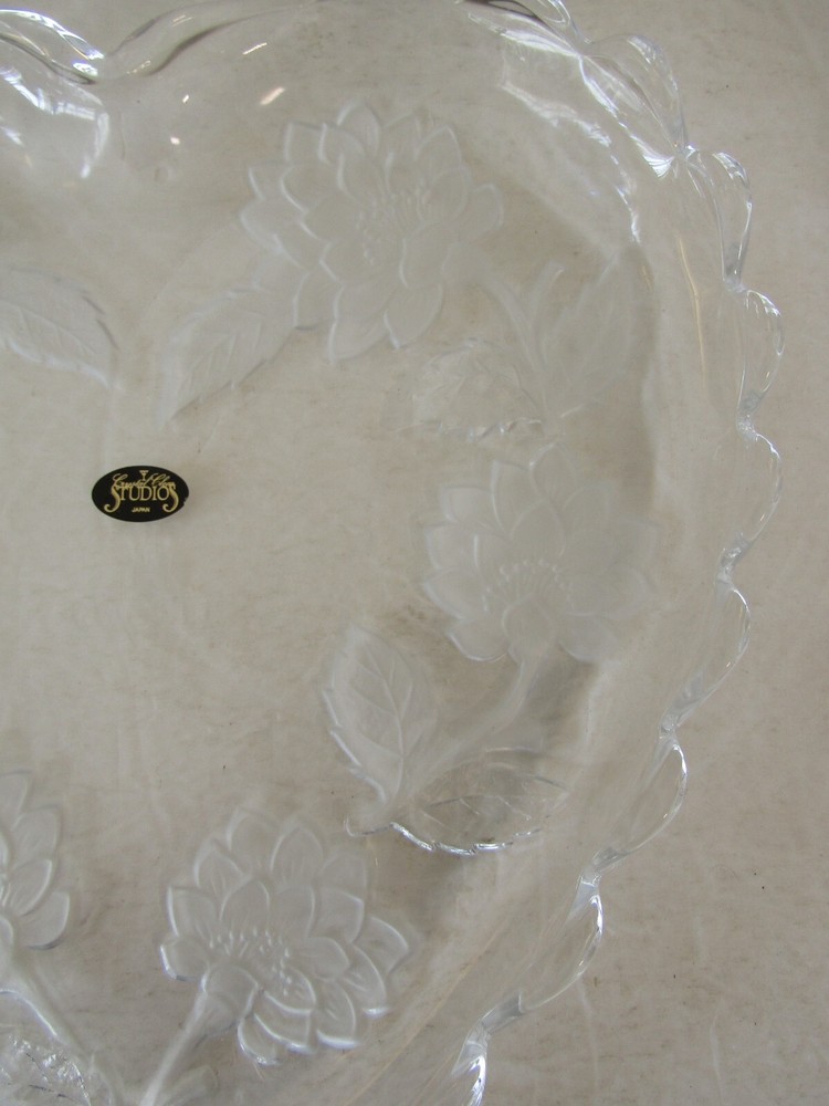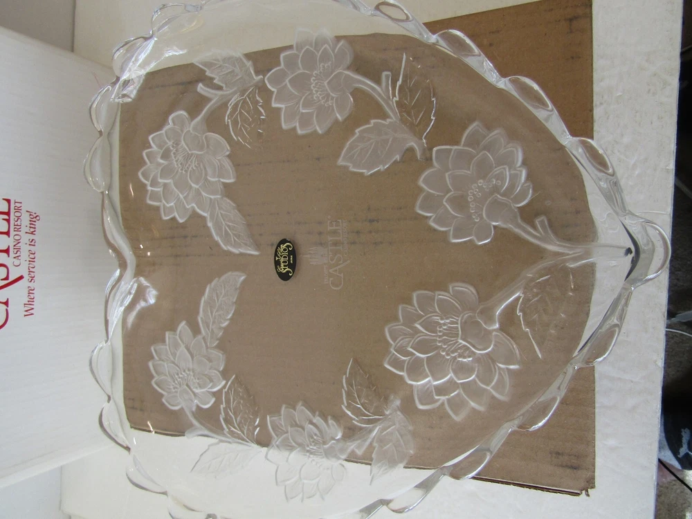 Trump's Castle Casino Resort Heart Shaped Etched Crystal Platter 12" BRAND NEW GOOD CONDITION BOX HAS SOME WEAR PLEASE SEE PHOTOS...