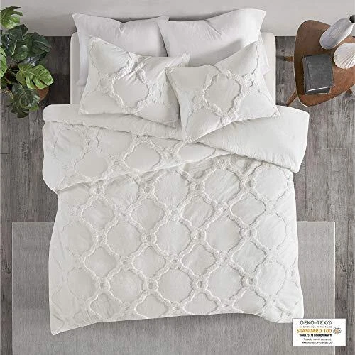 Return Policy Fast Delivery Trusted seller Tufted Chenille 100% Cotton Duvet Modern Luxe All Season Comforter Cover Bed Set with Matching Shams, King/California King(104"x92"), Ogee Off White 3 Piece Product Description 100% Cotton Refresh your bedroom décor with the charming style of the Pacey 3 Piece Tufted Cotton Chenille Geometric Duvet Cover Set. Made with 100% cotton in duvet cover, due to the nature of the chenille fabric, some shedding will occur naturally in the first 3-4 washes Refresh your bedroom décor with the charming style of the Pacey 3 Piece Tufted Cotton Chenille Geometric Duvet Cover Set. Made with 100% cotton in duvet cover, it displays a luxurious chenille design Cotton cover is Oeko-Tex certified to be free of any chemicals and harmful substance and equipped with 4 corner ties and button closure to secure the filled insert from shifting Set includes: 1 Duvet Cover: 104"W x 92"L, 2 King Shams: 20"W x 36 "L Care instructions: Machine wash cold, gentle cycle, and separately. Do not bleach. Tumble dry low, remove promptly. Do not iron. Spot clean pillows. If t is no free movement in the washer or dryer, use large capacity commercial washer/dryer/ Shipping Returns Payment Shipping Shipping is FREE to all addresses other than APO/PO boxes in the lower 48 states. All our stock ships from US-based warehouses. Shipped via USPS or UPS (depending on location and package weight) Unless stated otherwise, all orders will ship within 24-72 hours of your payment being processed. Check our feedback to see the great reviews of FAST shipping we offer. Returns Seller does not accept returns Payment We currently accept payment via eBay managed payments only. Once payment is cleared, we will dispatch your shipment within 1-3 business days. Please refer to the "Shipping" tab for more information regarding shipping speed to your destination.