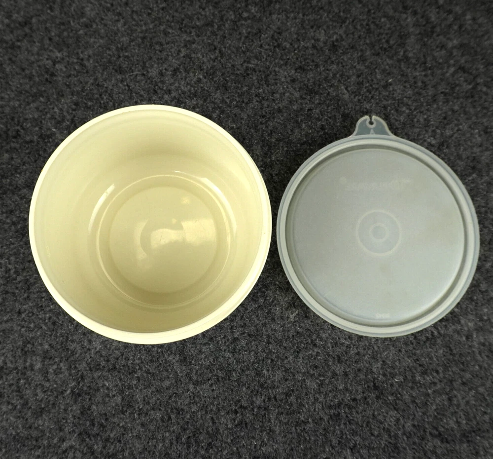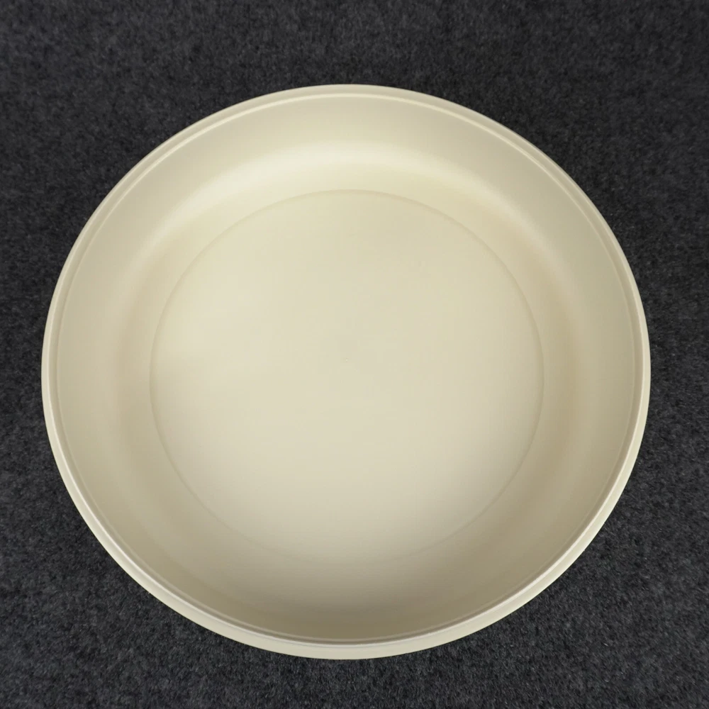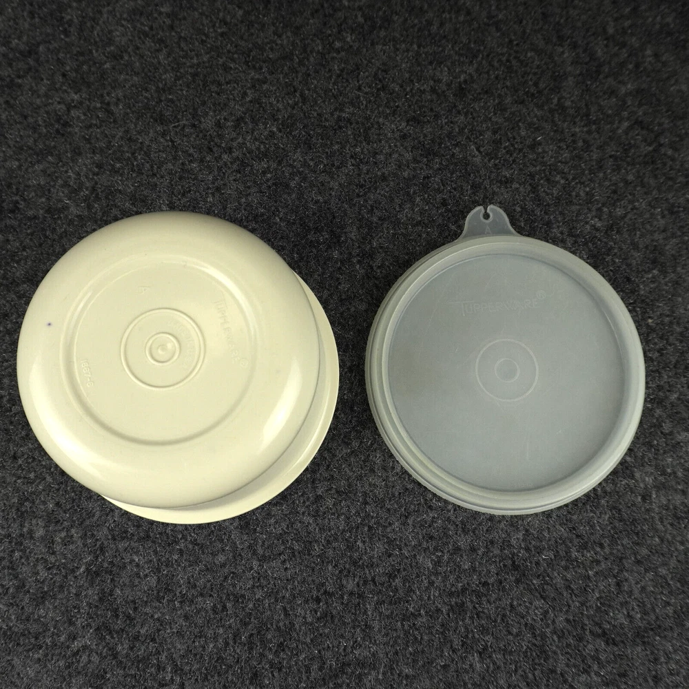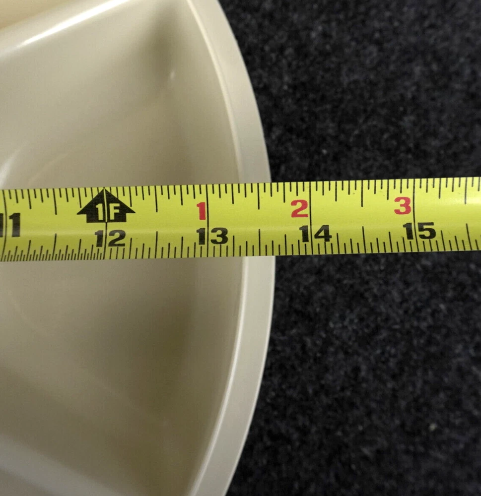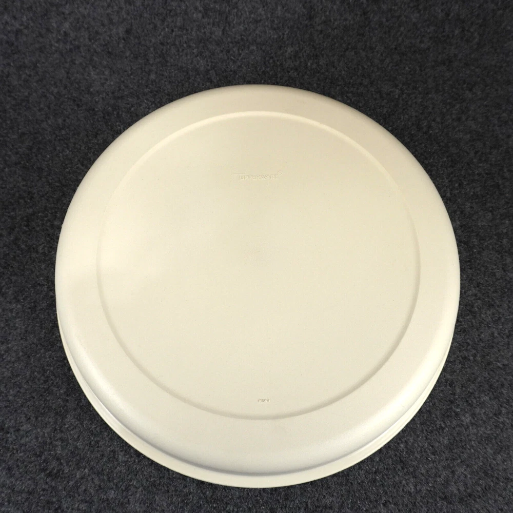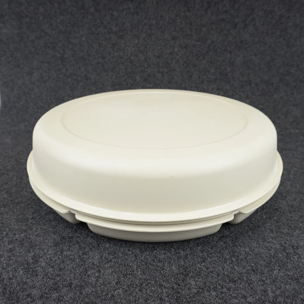This vintage Tupperware #1665 serving tray set is perfect for entertaining guests or enjoying snacks with your family. The set includes a large round tray with 7 compartments, a veggie dip bowl, base tray, and lid. The solid pattern and almond color give it a retro feel that will enhance the look of any kitchen. The Tupperware #1665 serving tray set is made of durable plastic and features push-on lids for easy storage. It is easy to clean and has a number of features, including a large size of 13.75 inches in length and width, 3.875 inches in height, and 7 slots for different items. This tray set is perfect for adults and comes with a holiday and veggie character theme that will make your snacks look even more inviting. Ships USPS Ground Advantage (Ship in United States 2 to 5 Business Days)