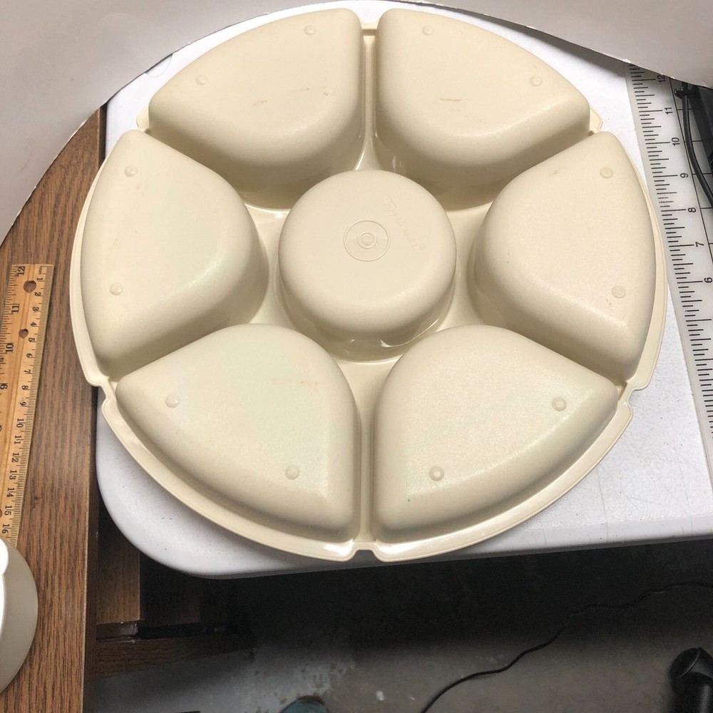 Tupperware 1665-1 Divided Serving Tray Container w Lid Party Vegetable Dip, VTG In very good condition. Minor dirt marks on bottom and outside lid. See Photos.