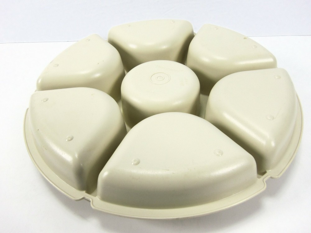 Tupperware Almond Chip/Dip/Veggie Fruit Party Tray Only1665-4 Measures : 13”x13”x2” Color: Almond Model: #1665-4 Condition: Has some scuffs and scratches RETURNS: Please read descriptions. Questions are welcomed and we try to answer all inquiries ASAP. Returned items must be returned in the same condition they were sent. Return postage is the responsibility of the buyer. SHIPPING: If you would like the item shipped to Puerto Rico, Hawaii, or Alaska, please contact us for the shipping cost. Intl shipping calculated by location. PROBLEMS: We like happy customers. If there is any issue with your order, please contact us and allow us to make it right for you. LOC: THG- TP2