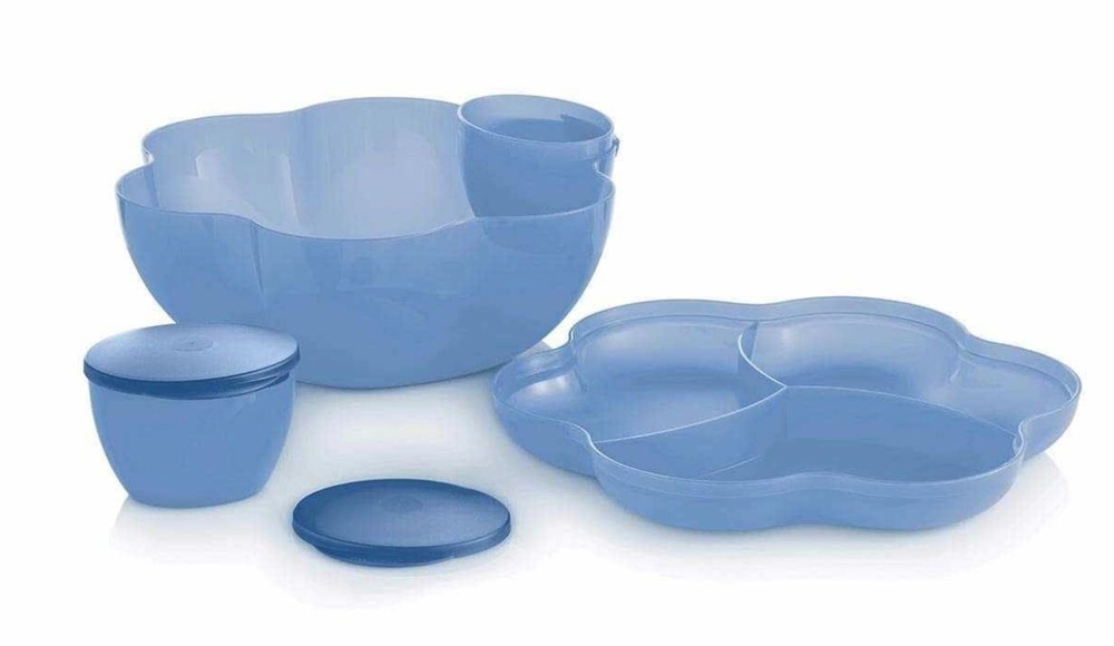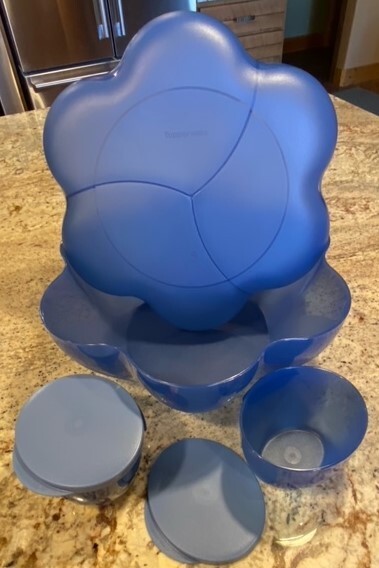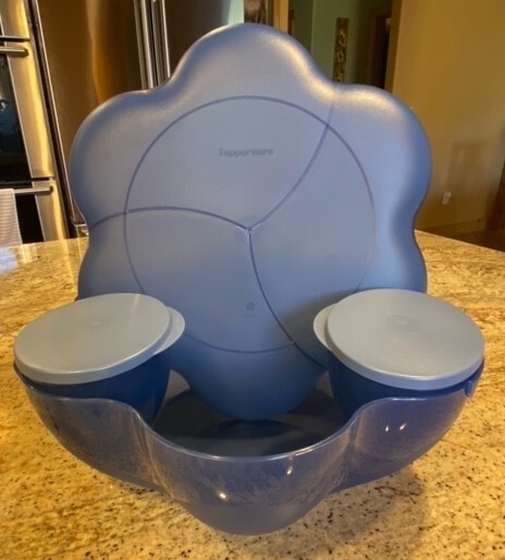 NEVER USED ~ BRAND NEW! ====================================== TUPPERWARE CHIP 'N DIP SERVING SET Perfect for all your party celebrations! Here's a true party-in-a-bowl! It's the ultimate party multi-tasker! You will receive: One 1-1/2 gallon/5.6L chip bowl that can double as a punch bowl. One three-compartment cover/lid that can double as a divided serving tray. Two 2 cup/470ml microwave reheatable dip bowls with matching seals. (Remove seals before microwaving.) Lightweight and virtually unbreakable, this large capacity serving set features a stylish, innovative bowl that is large enough for chips, a crowd-pleasing salad, popcorn, or party punch. The clever lid also has shallow dividers to act as a serving tray for veggies, fruit, charcuterie, toppings, etc. To serve salsa or dip, just hook the small bowls on the rim of the large bowl. Use for chips 'n dip or salsa, burger bar, salad bar, veggie tray, fruit platter, deli platter, bread bowl, punch bowl, and more. Tupperware refers to color of bowl, lid, and dip bowls as dragonfly. It is a beautiful shade of blue. Dishwasher safe. Factory-direct item; available for immediate shipment. Chip 'N Dip Serving Set has never been used. BRAND NEW! Chip 'N Dip Serving Set will come to you in its original Tupperware packaging. Taken out of packaging for photo purposes only. I am the original owner; stored in a smoke-free environment. Chip 'N Dip Serving Set weighs 1 lb.,14 oz. prior to adding any packaging material(s). Item will be securely packaged and sent USPS Ground Advantage. Please message me with any questions. Thank you! ===================================================================================== INTERNATIONAL SHIPPING: International Buyers Please Note: Import duties, taxes and charges are not included in the item price or shipping charges. These charges are the buyer's responsibility. Please check with your country's customs office to determine what these additional costs will be prior to bidding/buying. These charges are normally collected by the delivering freight (shipping) company or when you pick the item up. Do not confuse import duties, taxes and charges for additional shipping charges.