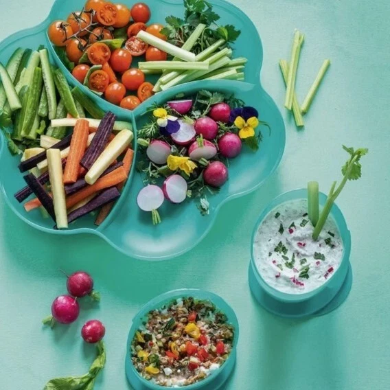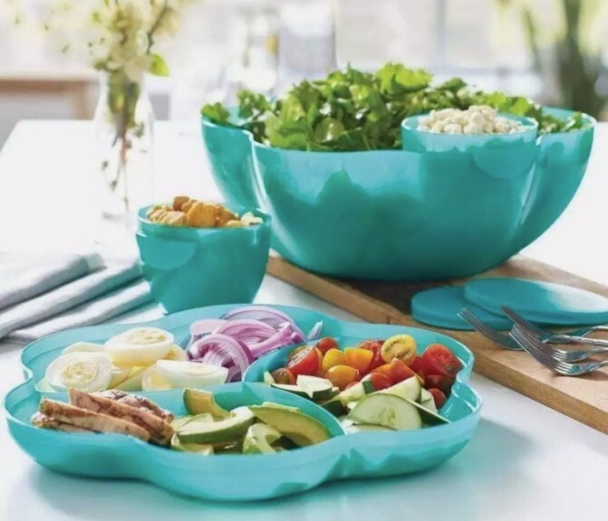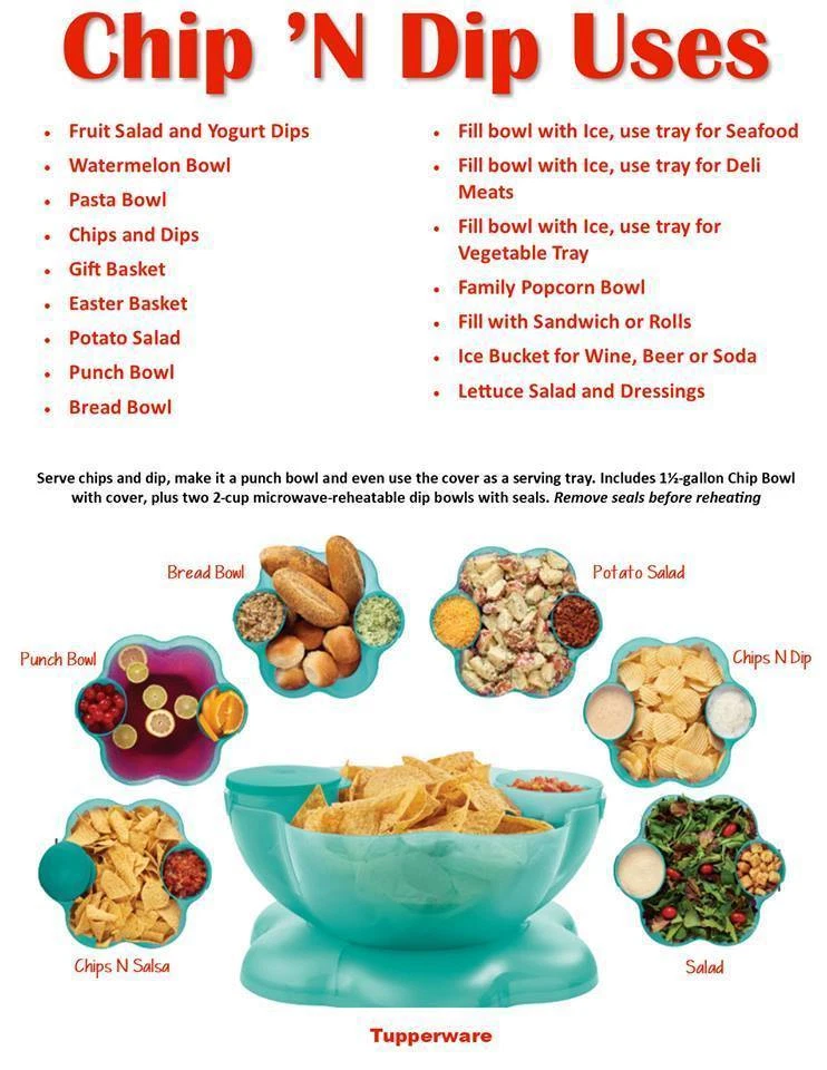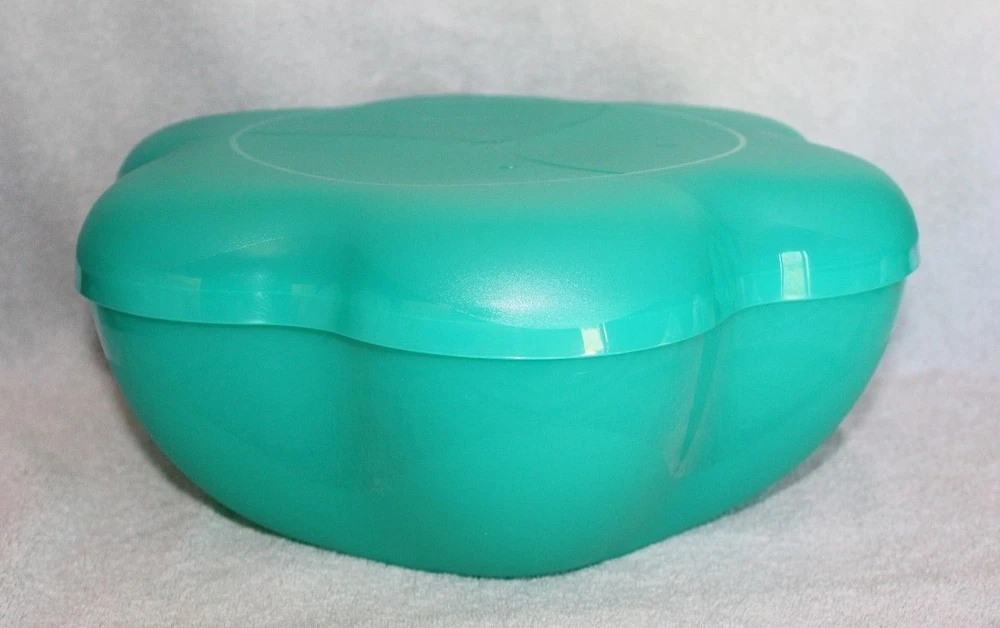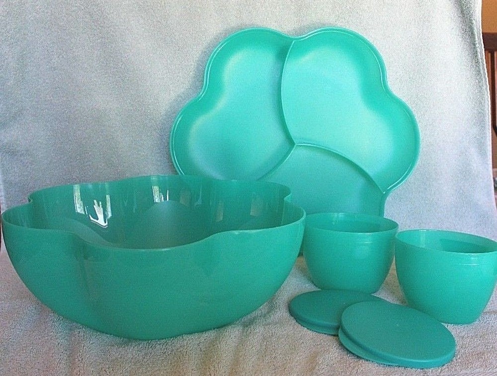NEVER USED ~ BRAND NEW! ====================================== TUPPERWARE CHIP 'N DIP SERVING SET Perfect for all your party celebrations! Here's a true party-in-a-bowl! It's the ultimate party multi-tasker! You will receive: One 1-1/2 gallon/5.7L chip bowl that can double as a punch bowl. One three-compartment cover/lid that can double as a divided serving tray. Two 16 ounce/500ml microwave reheatable dip bowls with matching seals. (Remove seals before microwaving.) Lightweight and virtually unbreakable, this large capacity serving set features a stylish, innovative bowl that can hold chips or a crowd-pleasing salad. To serve salsa or dip, just hook the small bowls on the rim of the large bowl. Use for chips 'n dip or salsa, salad bar, veggie tray, fruit platter, deli platter, bread bowl, punch bowl, and more. Tupperware refers to color of bowl, lid, and dip bowls as alpine/parrotfish. It is a very pretty teal green color. Dishwasher safe. Factory-direct item; available for immediate shipment. Chip 'N Dip Serving Set has never been used. BRAND NEW! Chip 'N Dip Serving Set will come to you in its original Tupperware packaging. Taken out of packaging for photo purposes only. I am the original owner; stored in a smoke-free environment. Chip 'N Dip Serving Set weighs 1 lb.,14 oz. prior to adding any packaging material(s). Item will be securely packaged and sent USPS Ground Advantage. Please message me with any questions. Thank you! ===================================================================================== INTERNATIONAL SHIPPING: International Buyers Please Note: Import duties, taxes and charges are not included in the item price or shipping charges. These charges are the buyer's responsibility. Please check with your country's customs office to determine what these additional costs will be prior to bidding/buying. These charges are normally collected by the delivering freight (shipping) company or when you pick the item up. Do not confuse import duties, taxes and charges for additional shipping charges.