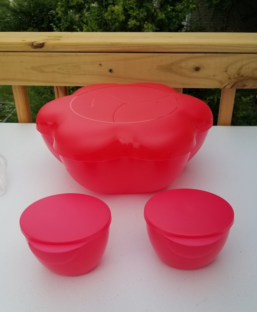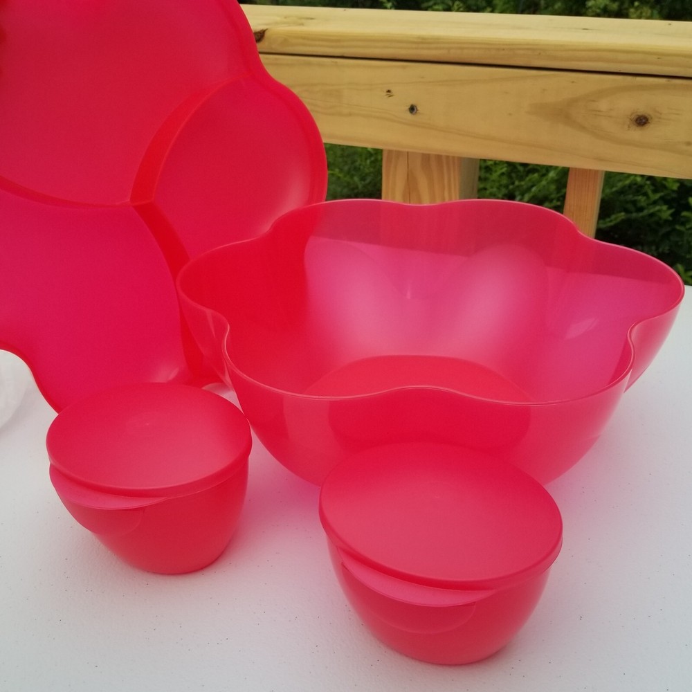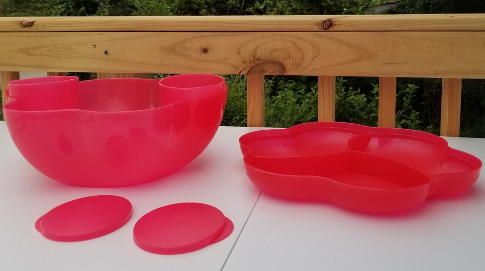 Tupperware - Chip N Dip Set with Dip Bowls 1.5 Gallon - Orange/red...