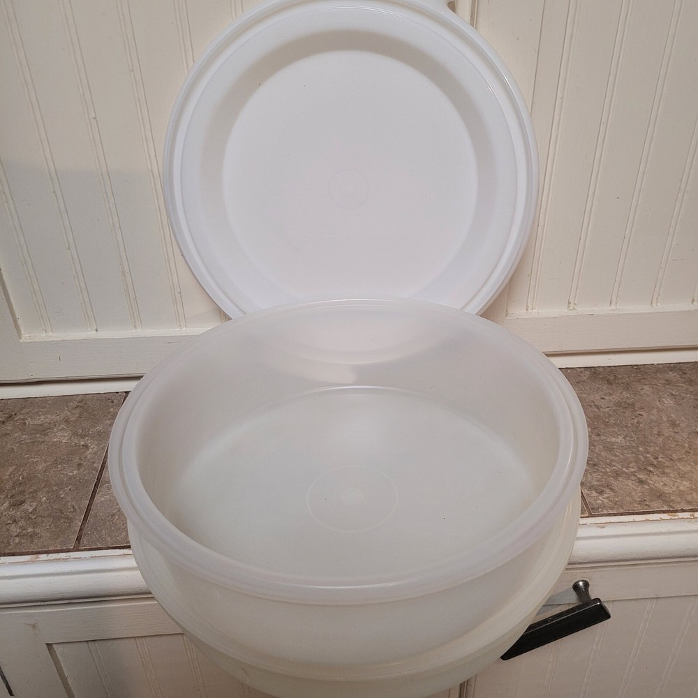 Lot of Vintage Tupperware Food Keepers 1- 10" Cake Keeper w/top 1- 12" Pie, Cupcakes, Cookies Carrier w/Lid 1- 14" Divided Chip & Dip Tray w/lid Great for entertaining at home or taking food somewhere else. In great condition.