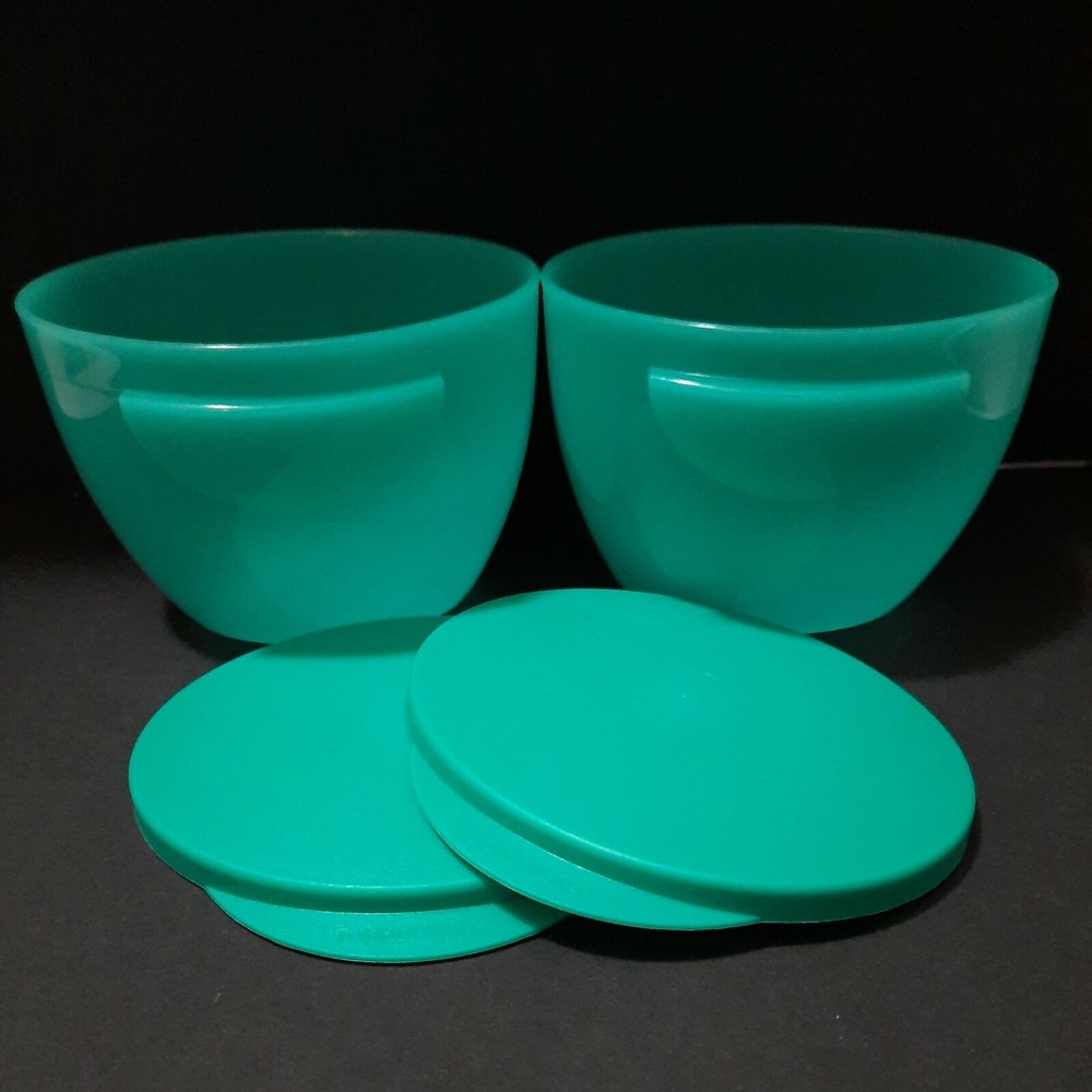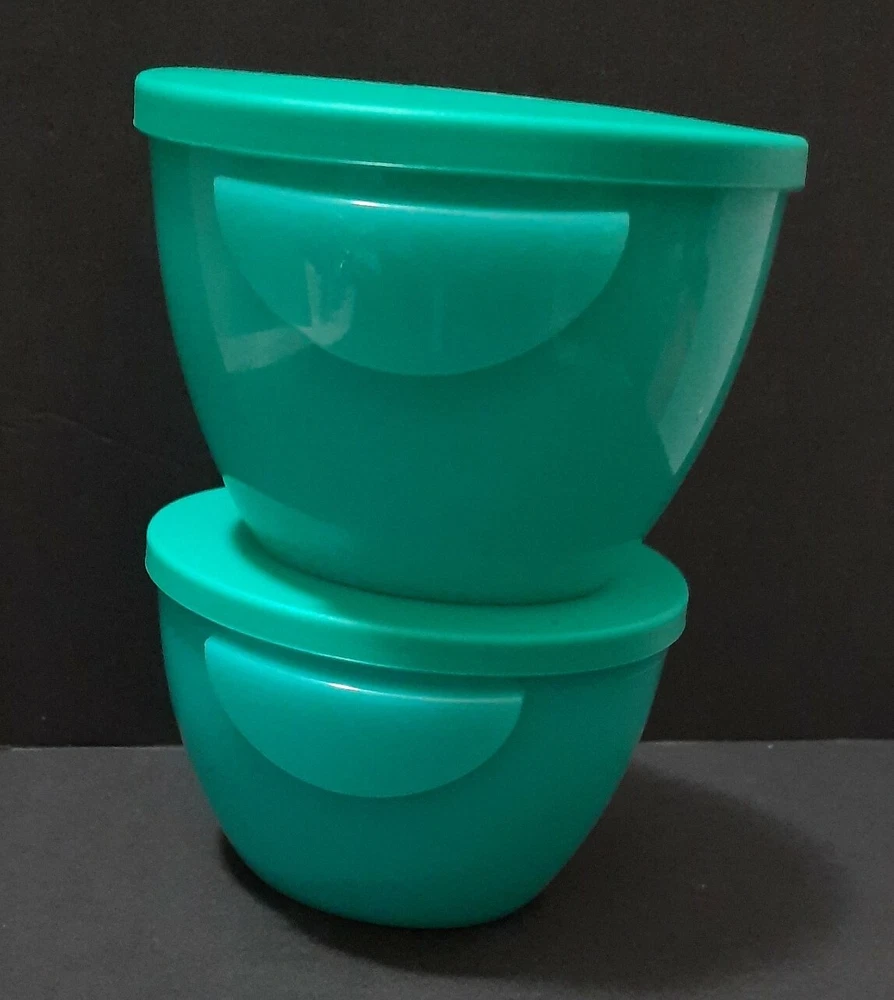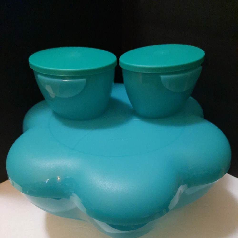 Tupperware Chip N Dip Set Our chip and dip bowl set is the ultimate party multitasker! Lightweight and virtually unbreakable, this large-capacity chip and dip serving set features a stylish, innovative bowl perfect for use as a punch bowl, with chips and salsa, chips and dip or a crowd-pleasing salad. To serve salsa or dip, simply hook the chip and dip smaller bowls on the rim of the larger bowl. The chip and dip set cover adds on-the-go versatility and is divided into separate compartments, making it a great serving tray. The smaller bowls are microwave-safe so you can make the perfect warm queso dip in seconds. Remove seals before microwaving. 1½-gallon/5.7 L chip bowl Two 2-cup/500 mL microwaveable dips bowls with seals (remove seals when reheating) Three-compartment cover/serving tray Color in Teal Green New in Package