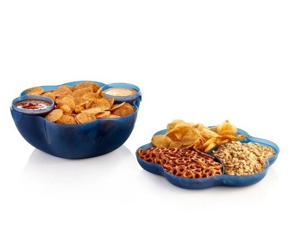 The Tupperware Chip 'N Dip serving bowl set is the ultimate party multitasker, featuring an innovative bowl that's large enough for chips, salad, popcorn, or party punch. The clever lid also has dividers to act as a tray for veggie, fruit, charcuterie, toppings, etc. Two microwaveable dip containers can be used separately or hooked to the bowl for easily serving salsa, dip, croutons, or sauce. The domed cover adds on-the-go versatility and is divided into separate compartments, making it a great serving tray. The smaller bowls are microwave-safe and come with seal lids so you can make our dips ahead of time and store them away in the fridge. Note: All pictures are of the actual item you will receive, we do not use stock photos unless otherwise indicated. Payment and Shipping: We only ship the item to the eBay address sent to us at the time of checkout. Please verify the correct shipping address in your eBay account before making payment to ensure your item is sent to the correct address. We will gladly combine shipping on purchases of more than one item. Please message us for the cost. We use USPS, FedEx, UPS to ship items within the U.S. and eBay Global Shipping for all international shipments. All items are carefully and professionally packaged for safe arrival to you. Refund Policy: If you are not completely satisfied with your purchase, you may return your item within 30 days of receipt for a credit of the original purchase price. We do not offer exchanges. We ask that you email us with the reason for the return before returning. We do not refund original or return shipping expenses.