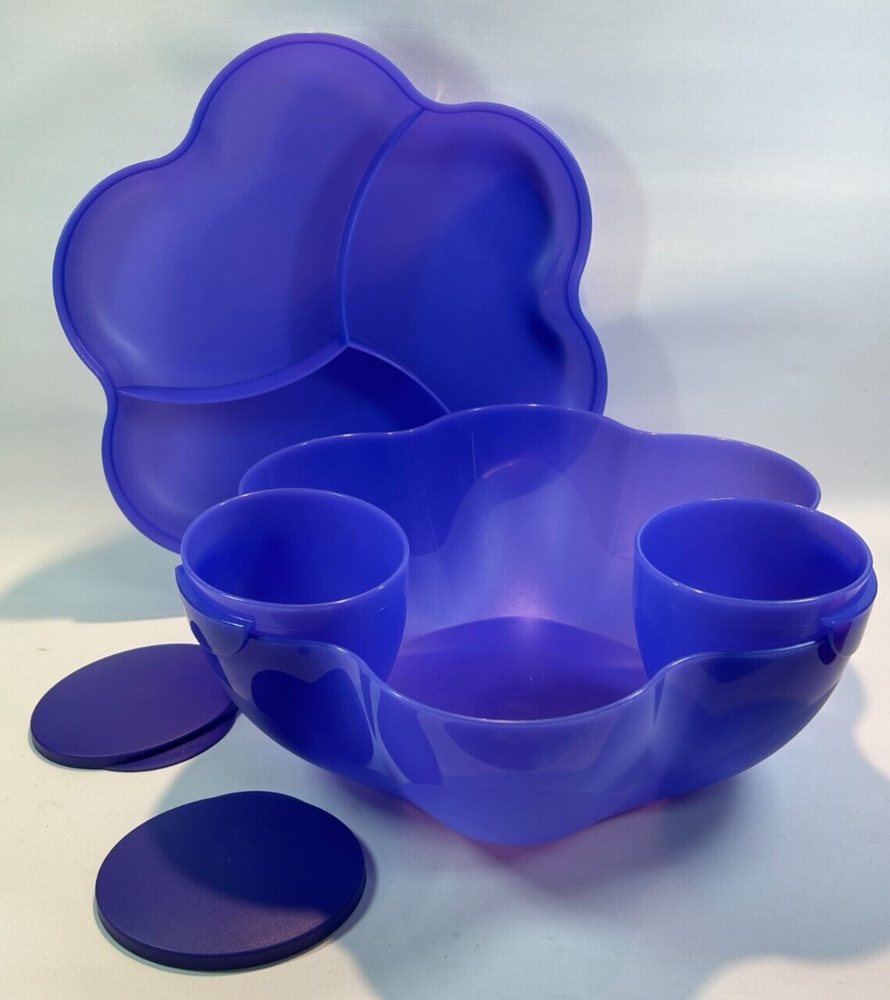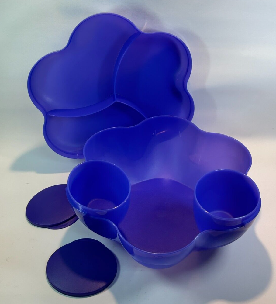 This Tupperware set is fantastic for parties! The blue color is vibrant, and the hanging dip bowls keep everything neat and organized. Perfect condition, great deal—exactly as described. Love how sturdy and practical it is. Seller also offers combined shipping, which is a huge plus. Highly recommend!