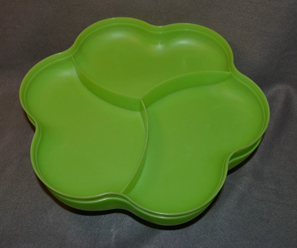 Tupperware Chip N Dip/Salad 2 Pc. Set Spring Green Easter Divided Party Tray 4624A-1 & 4625A-1 Missing the 2 small dip bowls. First picture is stock pic from internet, the rest of the pics are actual pics. Made in USA. New, never used, just stored. Can be used as a chip bowl, green salad bowl, potato salad bowl, popcorn bowl.... Fast Same Day Shipping!