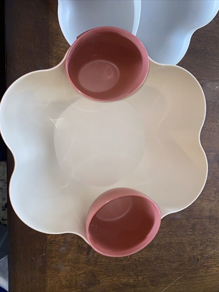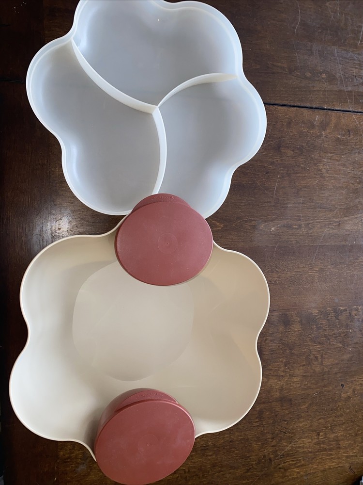 This Tupperware set is a game-changer for entertaining! The durable, chip-resistant bowls and divided tray make serving snacks so easy. Love the sleek crème color—it looks elegant yet practical. Perfect for dips, chips, or even side dishes. The lids seal tight, keeping food fresh. Highly recommend for anyone who loves hosting or just wants sturdy, versatile kitchenware. Great condition and super functional!