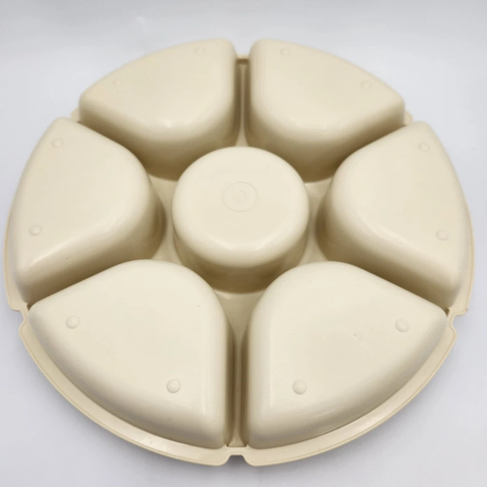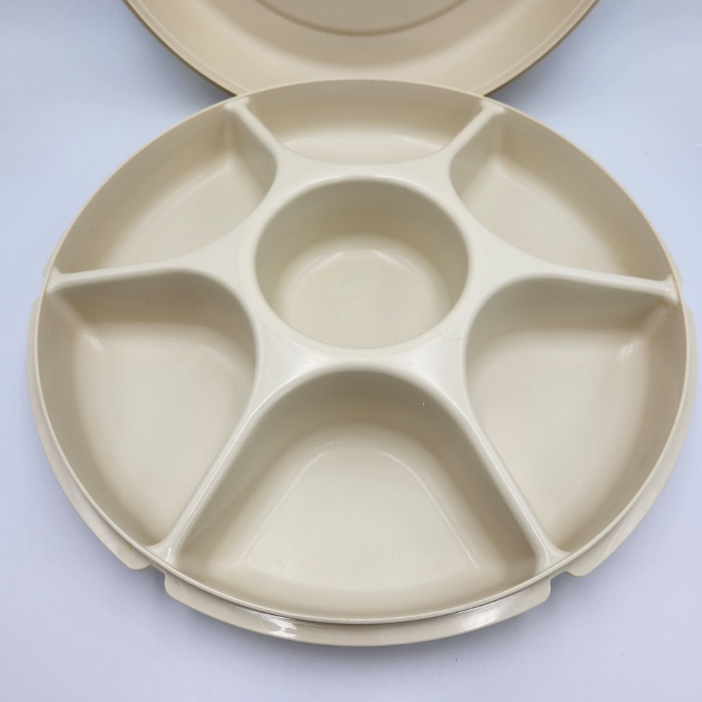 Tupperware Divided Serving Party Tray 1665-3 Almond With Lid 1666-3 No Dip Bowl...