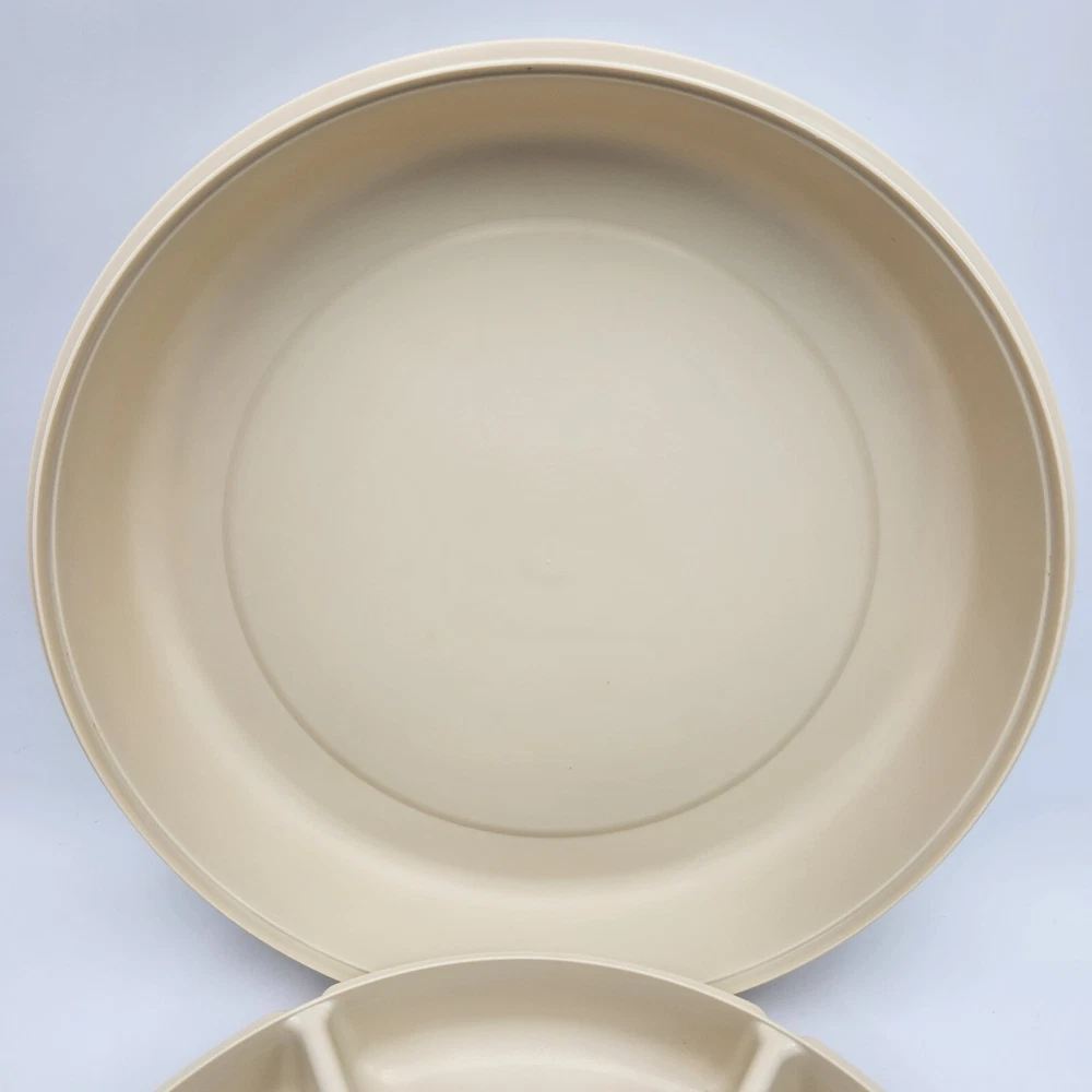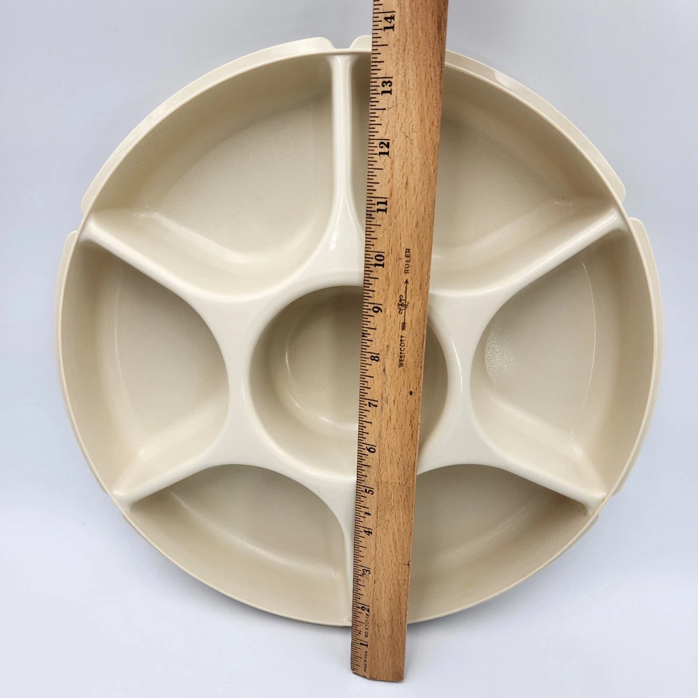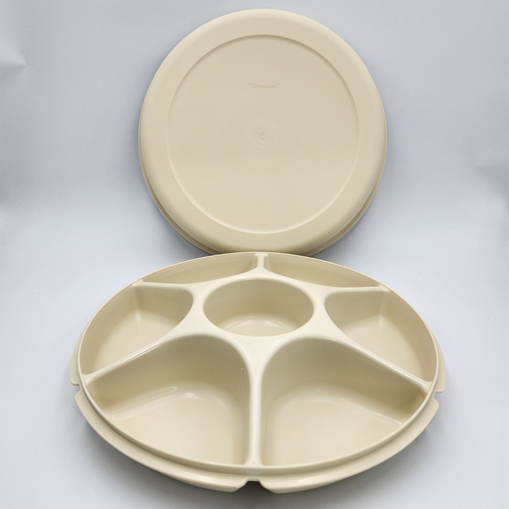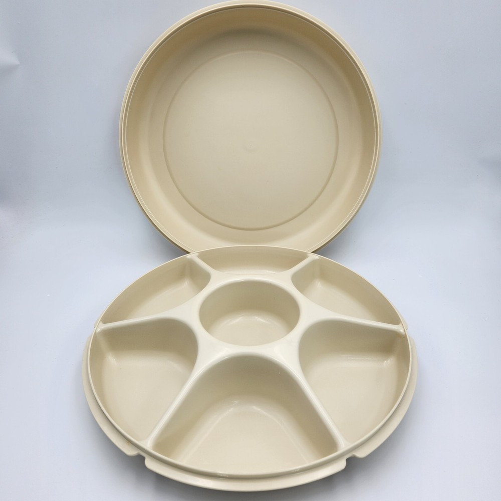 Tupperware Divided Serving Party Tray 1665-3 Almond With Lid 1666-3 No Dip Bowl