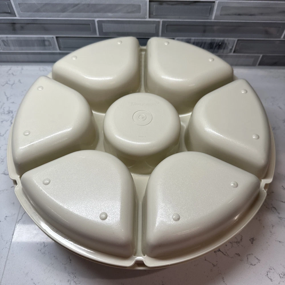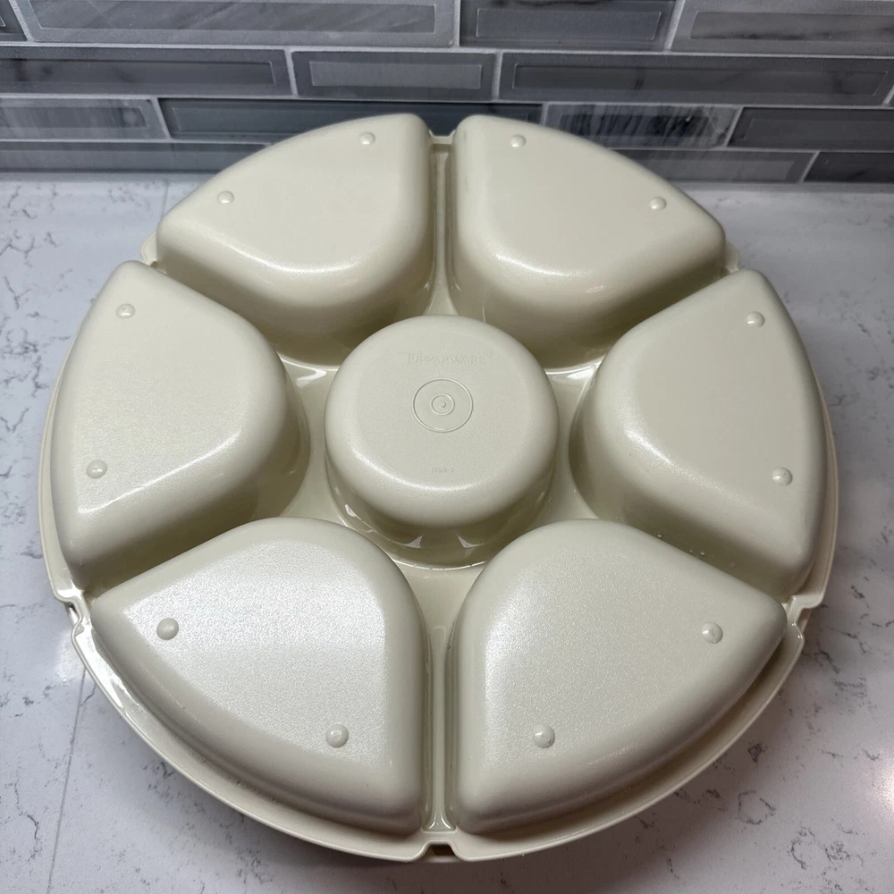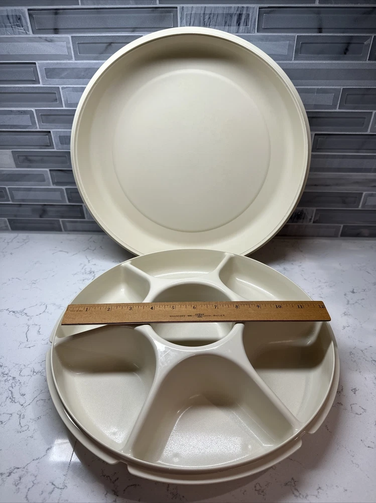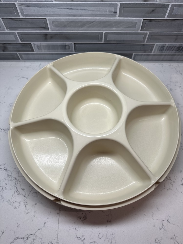 Tupperware Divided Serving Tray 1665-3 Almond With Lid 1666-3 No Dip Bowl 2 pcs. SHIPS FREE!!