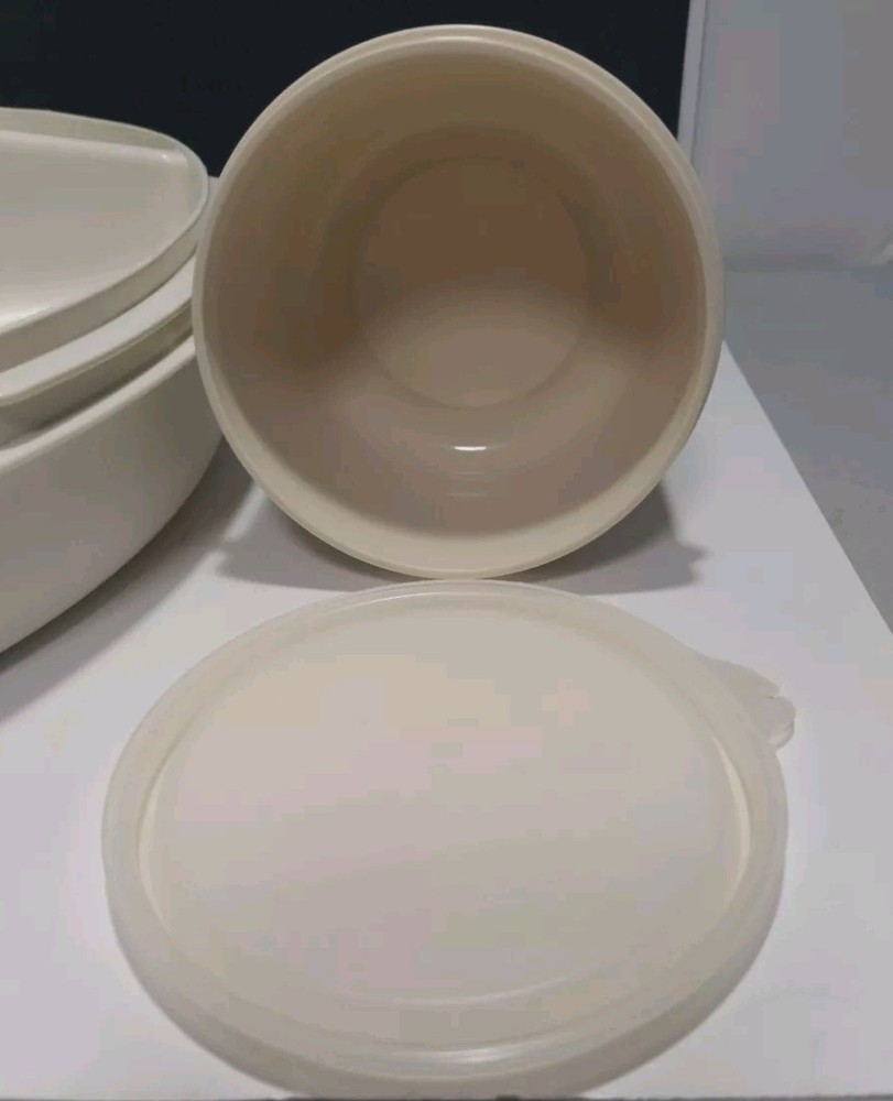 Fast shipping and very well packaged! Tupperware bowls and covers are in good shape as described along with reasonable pricing. Smooth transaction. Thank you!! A+++