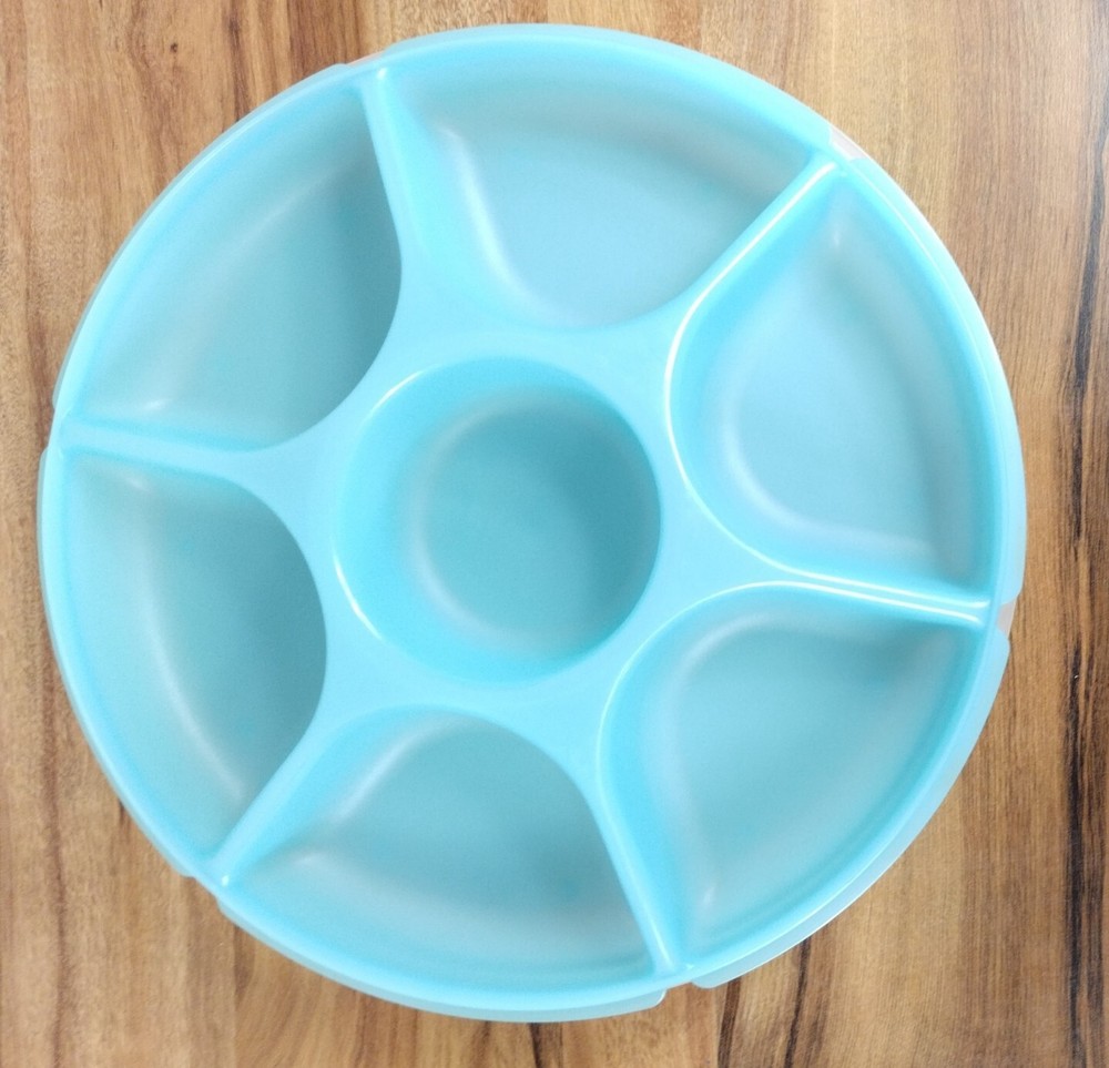 Tupperware Divided Vegetable Fruit Chip Dip Server w/ Lid 1665 ~ Opaque Blue.