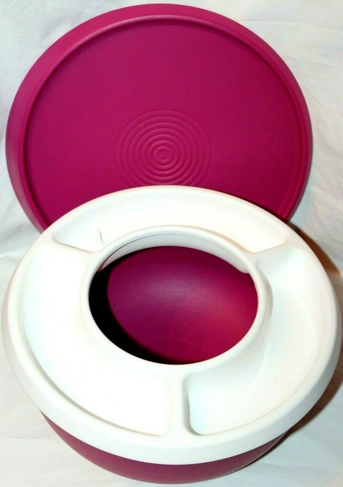 Pre-owned! Tupperware Essentials Large Bowl w/ Serving Tray Insert 6"H x 10"W (Dia) 4.3L 6910A-1 3-Pc Set Includes: White 3-part divided tray 1 Purple Lid 1 Large Bowl Radish Purple Bowl with Matching One Touch Seal and Removable White Serving Tray 18 Cup / 4.3 L Capacity Measures approx. 10" diameter by 5" deep by 5" high Airtight Liquid Tight Seal BPA Free, Dishwasher Safe, Lifetime Warranty Comes from a Smoke / Pet Free Environment. 8421 FAQ: How long does it take to receive my order? All orders will be shipped within one (1) business day of your order being placed, except during holidays and weekends. All orders placed after 3 PM Friday will be processed on the following Monday. Once your order has been shipped, you will receive a confirmation email with your tracking info provided. What if my package is lost or stolen? We cannot be held responsible for stolen or lost packages when the USPS tracking system show that the package was delivered. However in the event that your package was lost, we can help you file a claim with USPS to report your lost shipment. How do I change or cancel my order? If for any reason you would like to change or cancel your order, please contact us right away through "eBay message". We will make every effort to accommodate your request however; we cannot cancel or change an order once it has been shipped. This is an ALL SALES ARE FINAL LISTING so please take note that we do not refund shipping costs or pay for return shipping for RTS (RETURN TO SENDER) items. Please make sure your address is CORRECT during checkout!!! ALL SALES ARE FINAL! NO RETURNS! NO EXCHANGES! We would greatly appreciate it if you could leave us a 5** positive rating feedback. We will be glad to do the same for you.. ALL SALES ARE FINAL! ALL SALES ARE FINAL! NO RETURNS! NO EXCHANGES! NO EXCHANGES! Please Visit My eBay Store: paigeltd3205 THANK YOU FOR LOOKING!!! We would greatly appreciate it if you could leave us a 5** positive rating feedback. We will be glad to do the same for you. Please Visit My eBay Store: paigeltd3205 THANK YOU FOR LOOKING!!!