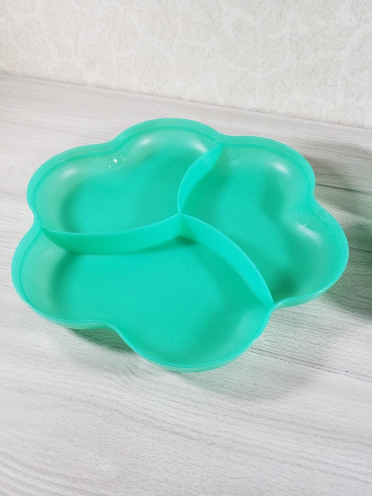 Tupperware Green Chip n Dip Server w/ Divided Lid & 2 Dip Bowls w/ Lids Jadeite green #4624...